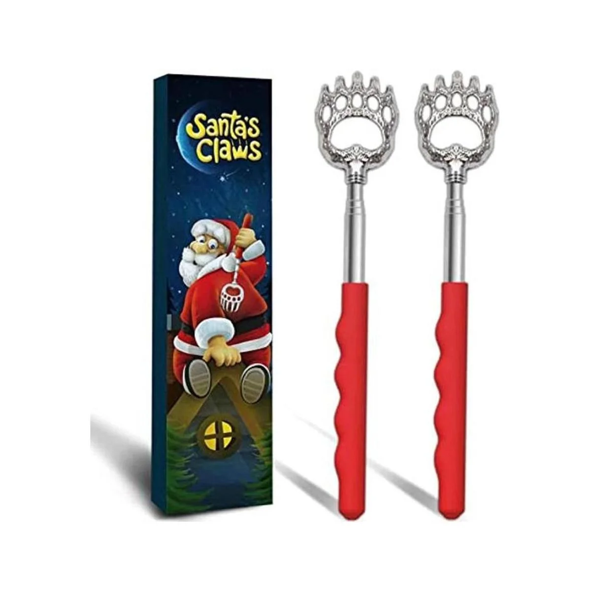 2 rascadores de espalda extensibles, masajeador telescópico de espalda de Santa Claws en caja de regalo de Navidad, divertido relleno de calcetines de Navidad para hombres, papás mujeres y adultos. Herramienta de masaje de garra de oso de Navidad para espalda