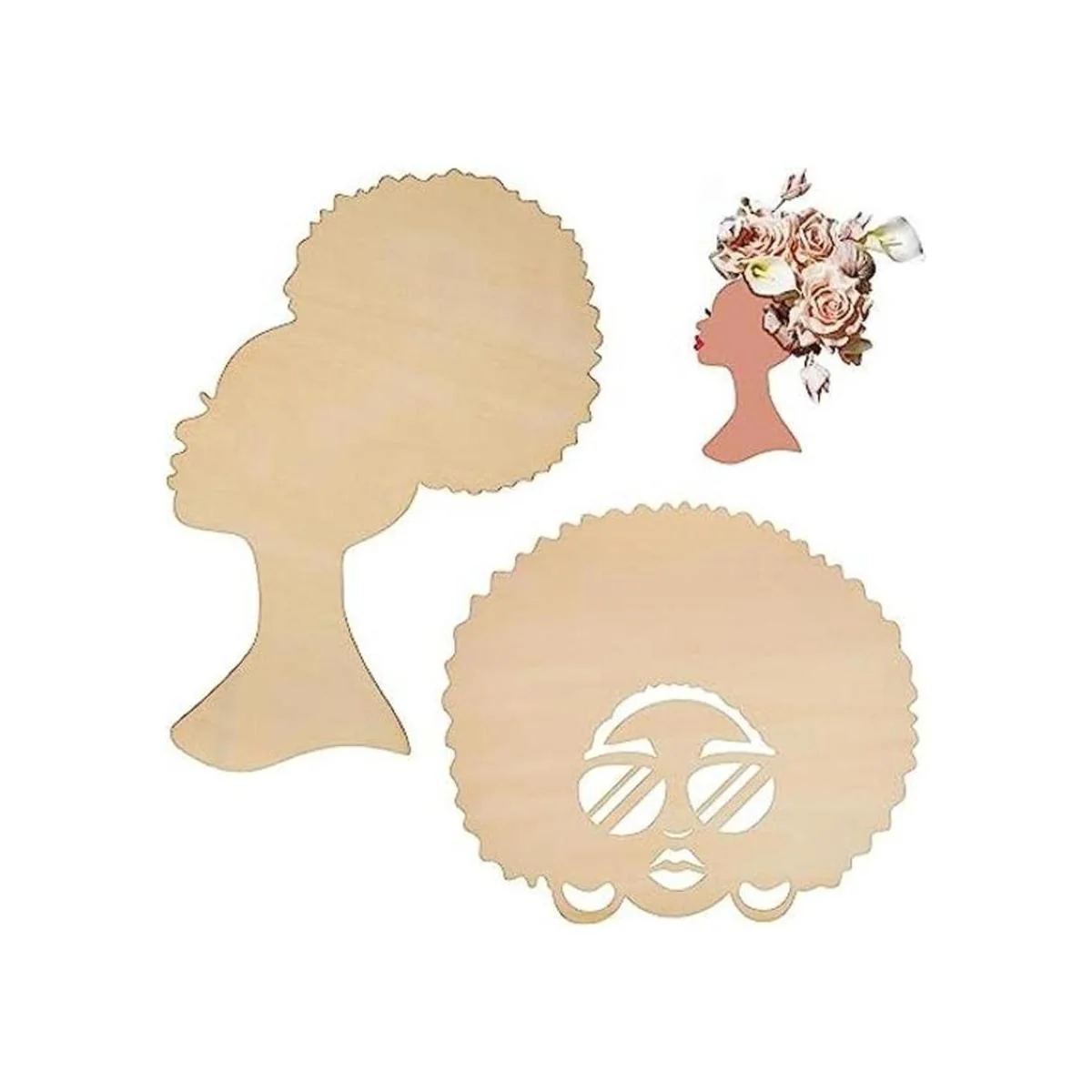 2 recortes de madera para niñas africanas para manualidades, plantilla de silueta de madre e hijo, cabeza de madera para bricolaje, regalo del día de la madre, manualidades, corona, puerta, letrero de pared