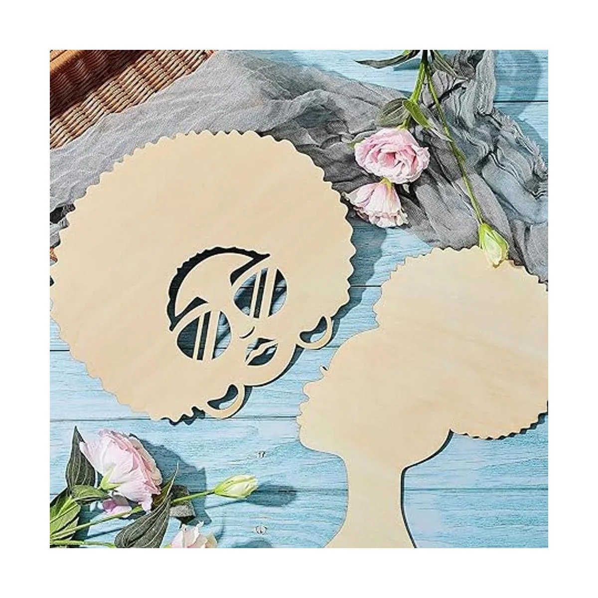 Natural y seguro de usar: estos recortes de madera de niña africana están hechos de madera natural, cortados con láser y bien pulidos, color de madera elegante y rústico, fuerte y duradero, y puede soportar cualquier decoración de personalidad que quieras añadir