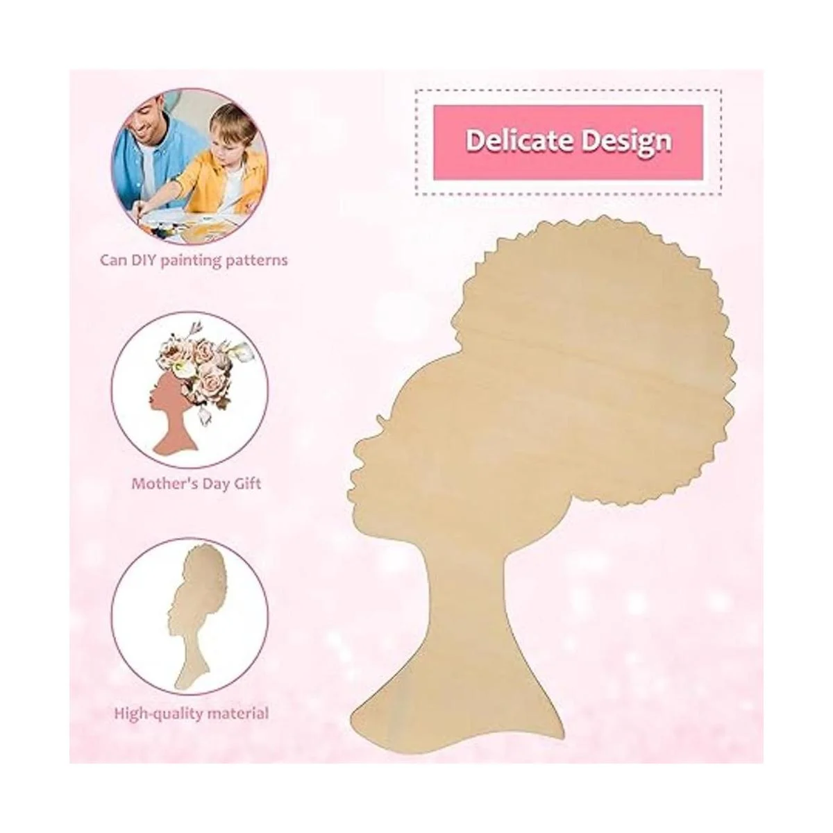 Formas vívidas: nuestros recortes de madera africanos femeninos tienen formas vívidas y atractivas, que pueden combinar bien con el tema del Día de la Madre y añadir un ambiente dulce, será el regalo significativo para el Día de la Madre