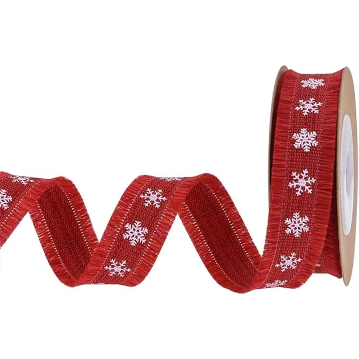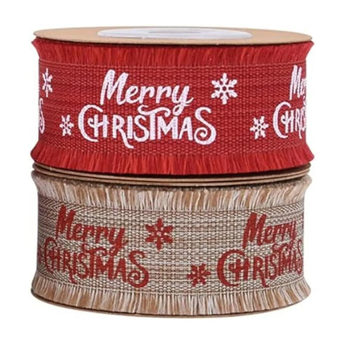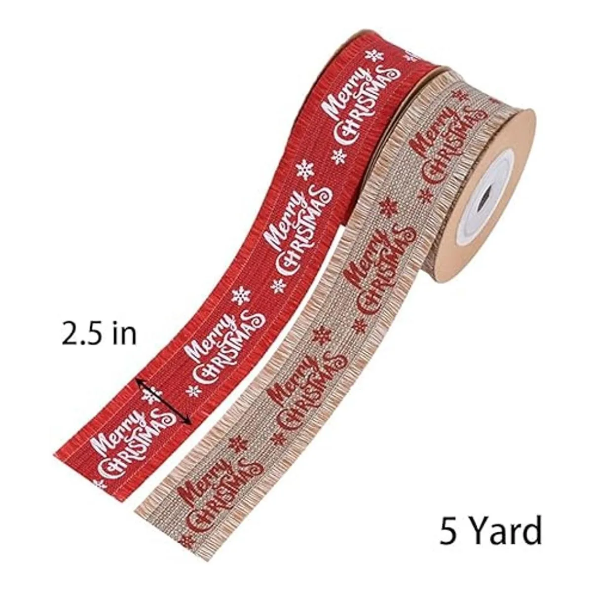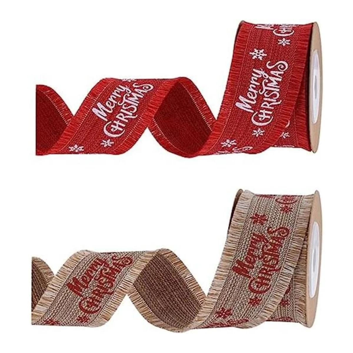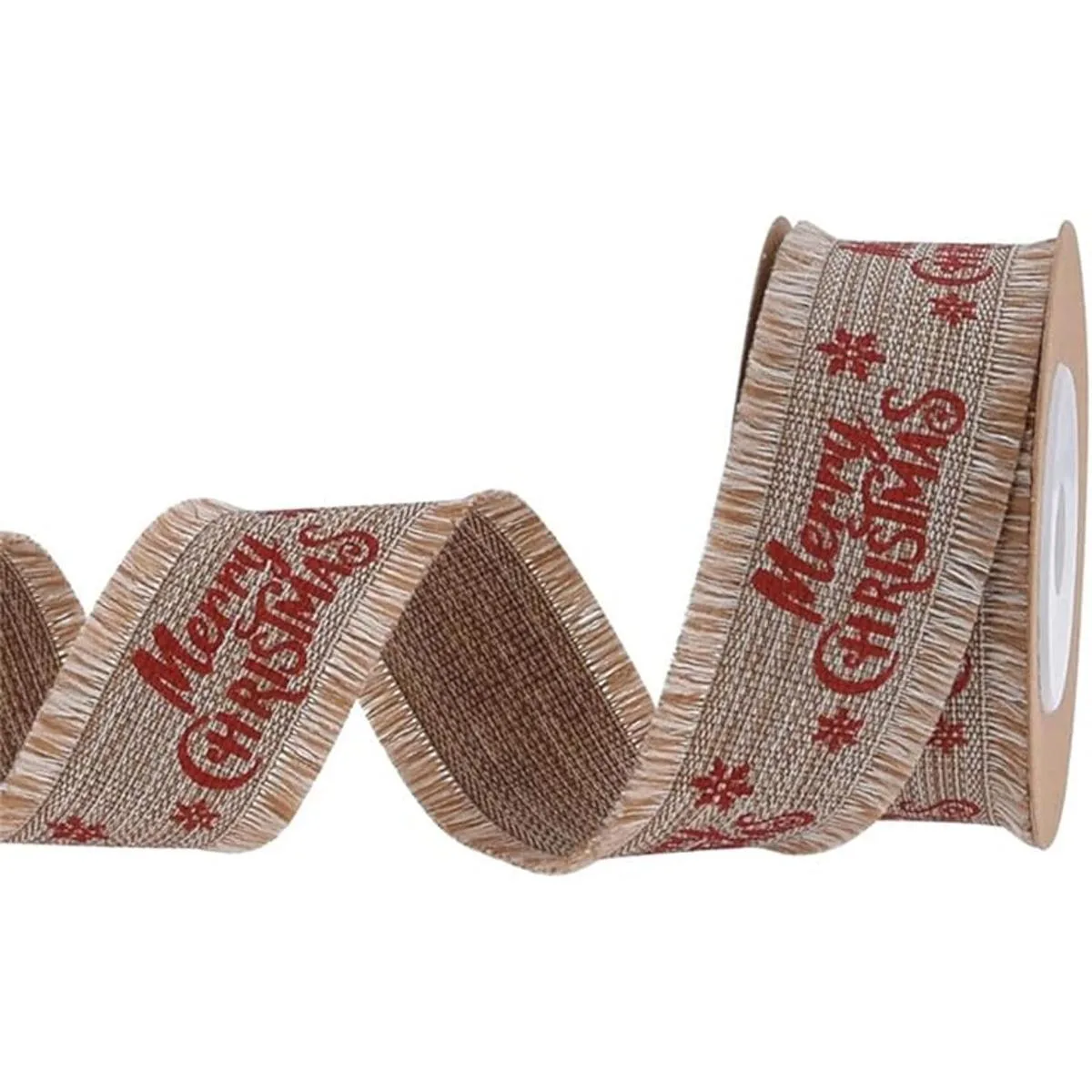 2 rollos de 1 pulgada de rebabas vintage de algodón y lino, cinta de regalo de Feliz Navidad, caja de regalo, cinta de cuerda de flores 5 yardasrollo MGPFERD