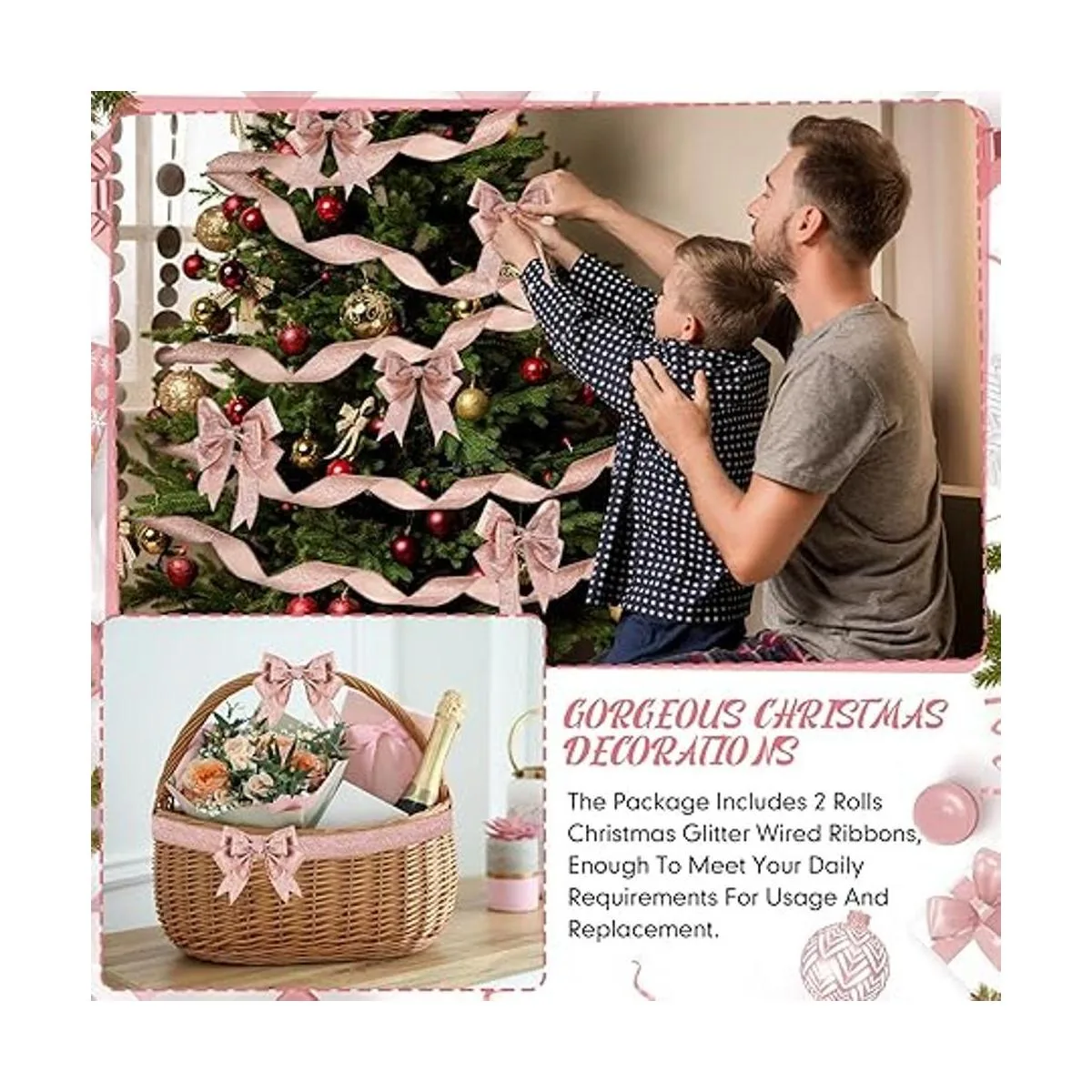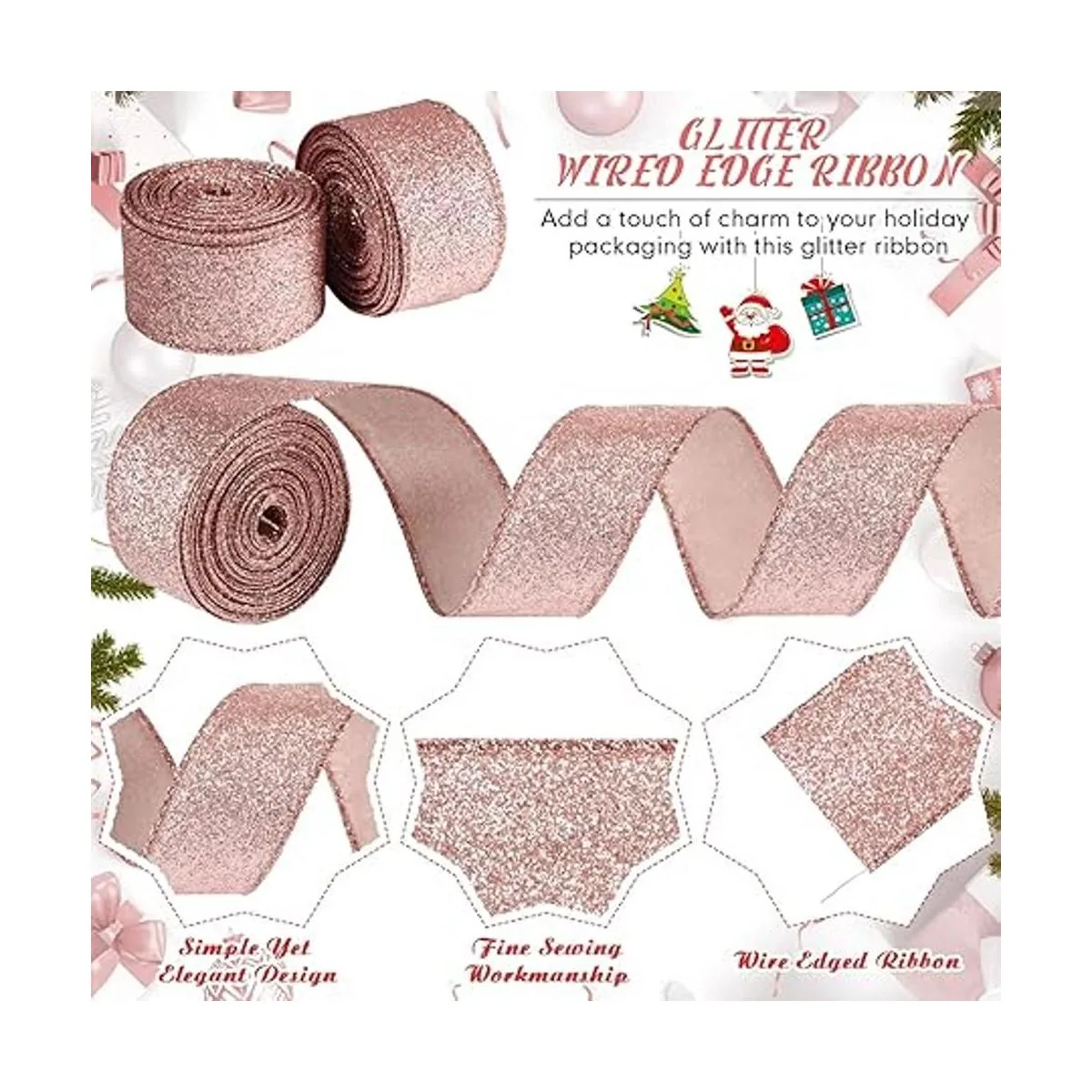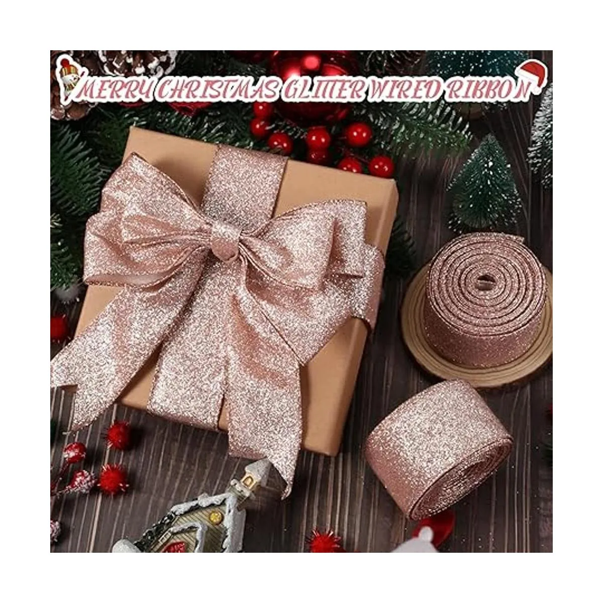 Amplia gama de aplicaciones: estas cintas con alambre con purpurina son adecuadas para muchas ocasiones, como Navidad, boda, vacaciones, club, cumpleaños y más, también se pueden utilizar para decorar árboles de Navidad, jardines, ventanas, puertas, cajas de regalo y mucho más
