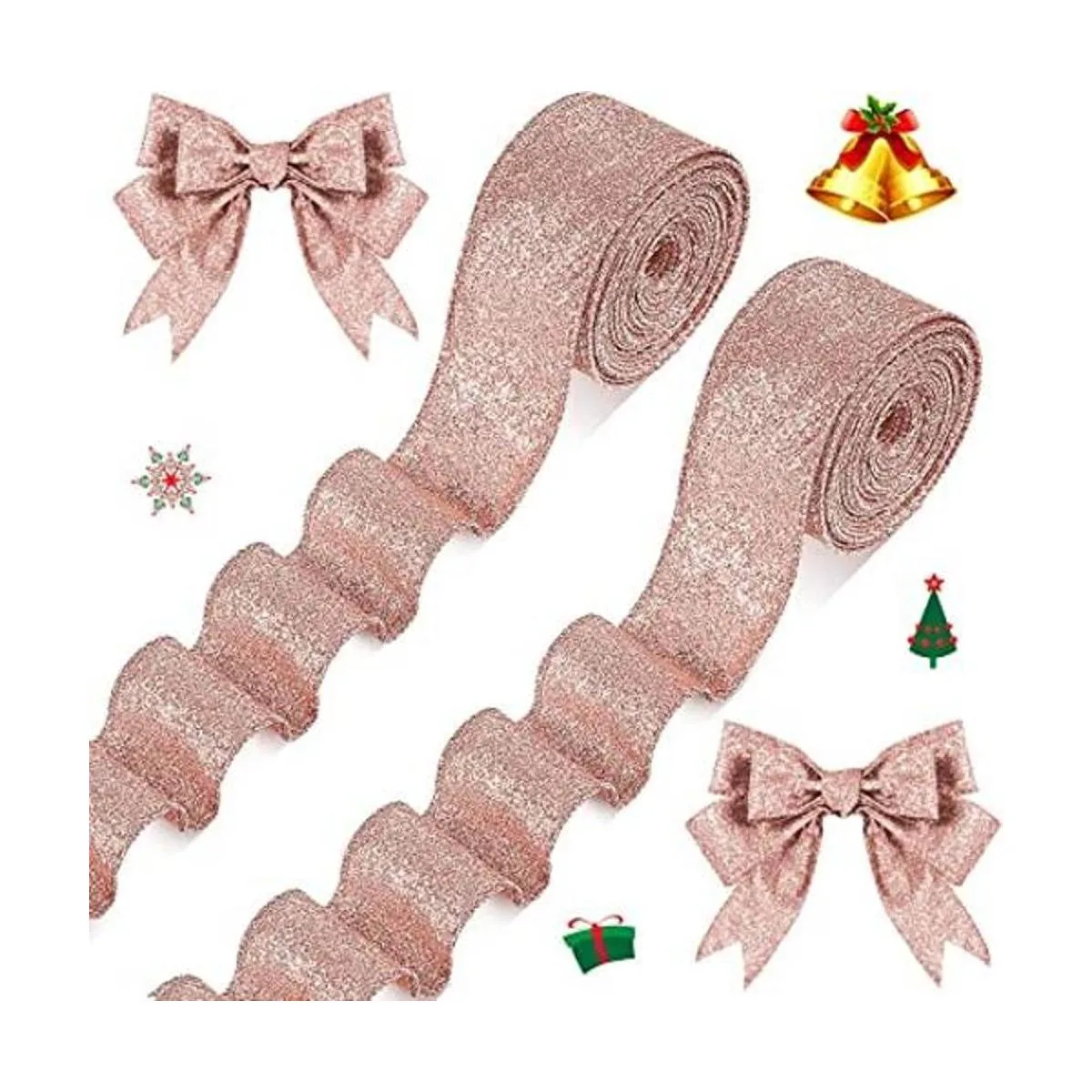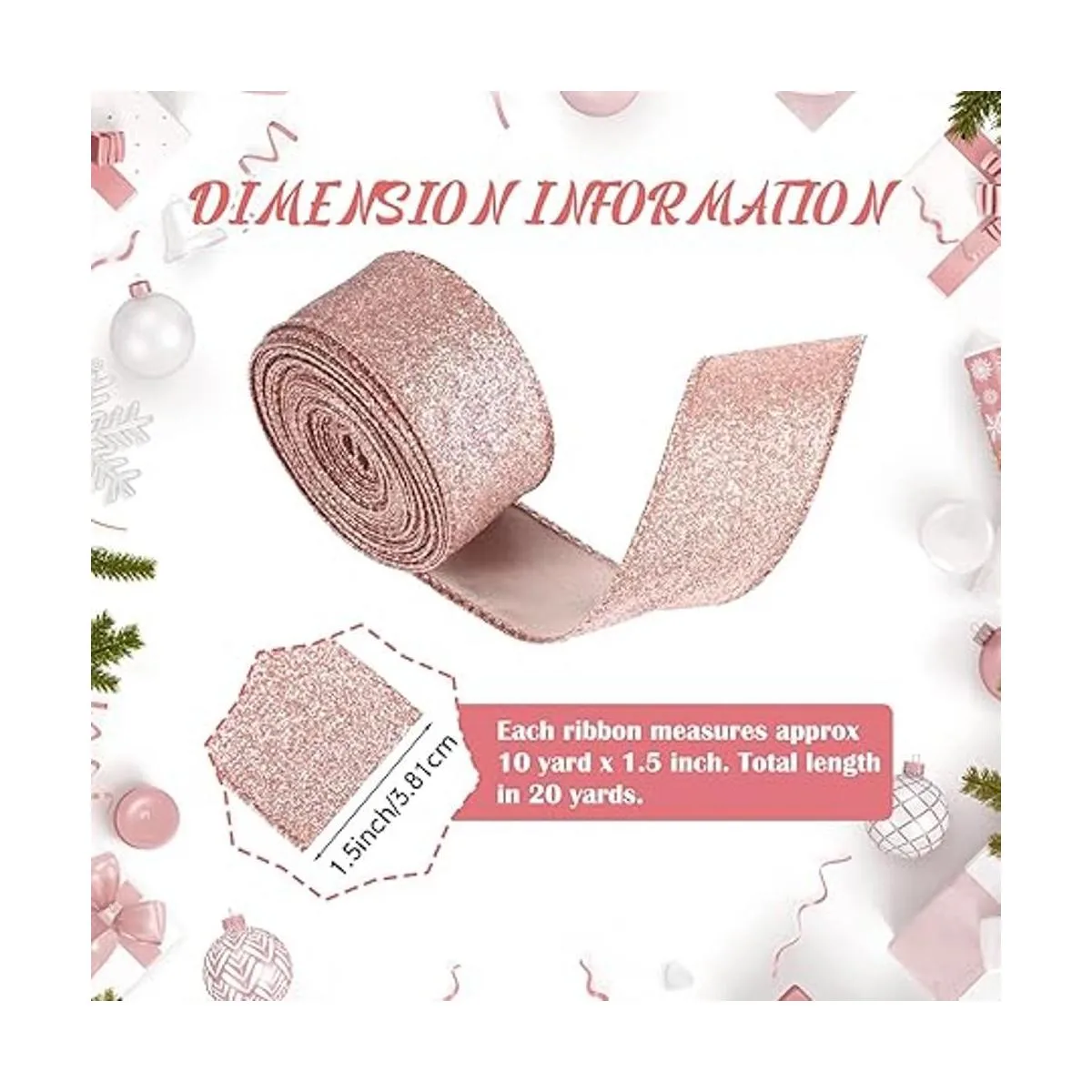2 rollos de 20 yardas para el día de San Valentín, cinta gruesa metálica con alambre para envolver regalos, ramo de San Valentín, manualidades, boda, fiesta de Navidad oro rosa, 1.5 pulgadas