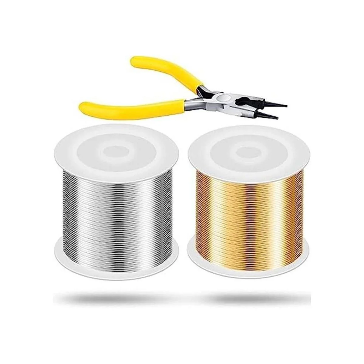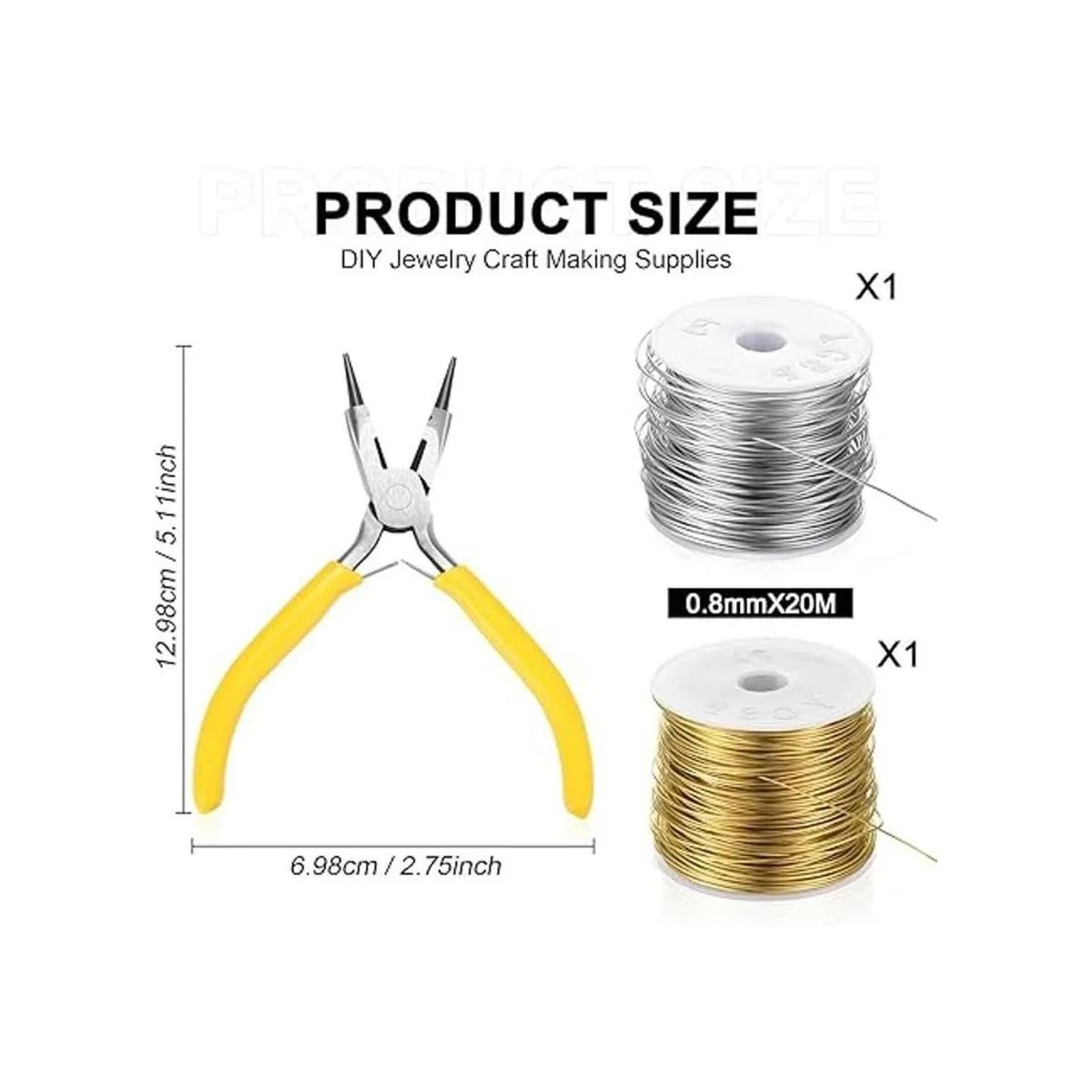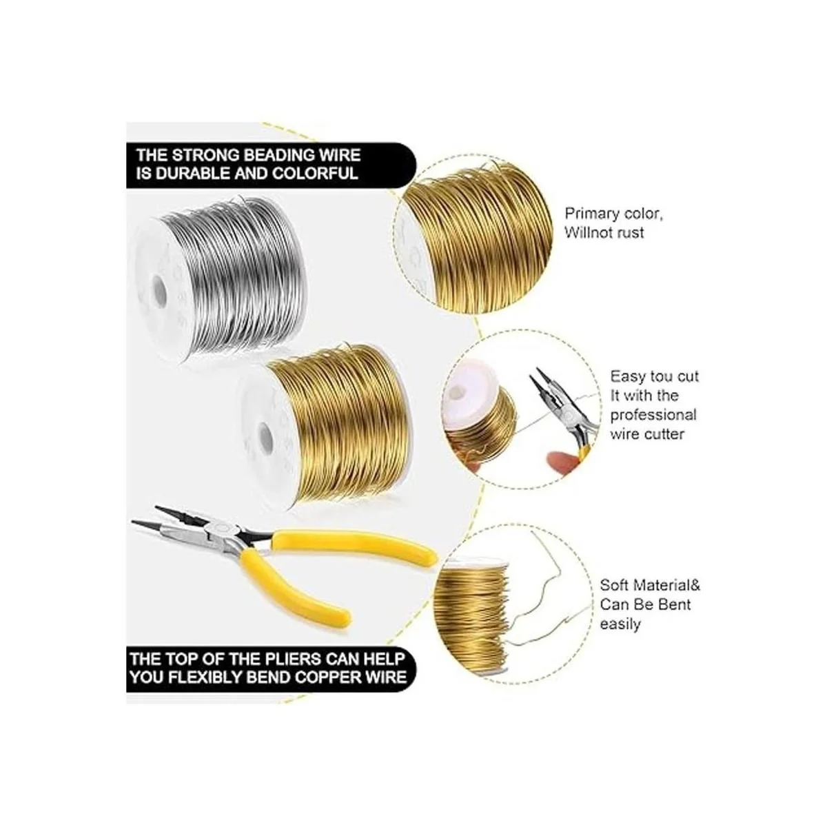 2 rollos de alambre y alicates de calibre 20 resistentes para hacer joyas, alambre de cobre para joyas, alambre de cuentas para manualidades, suministros de fabricación de joyas, plata y oro, 0.031 in