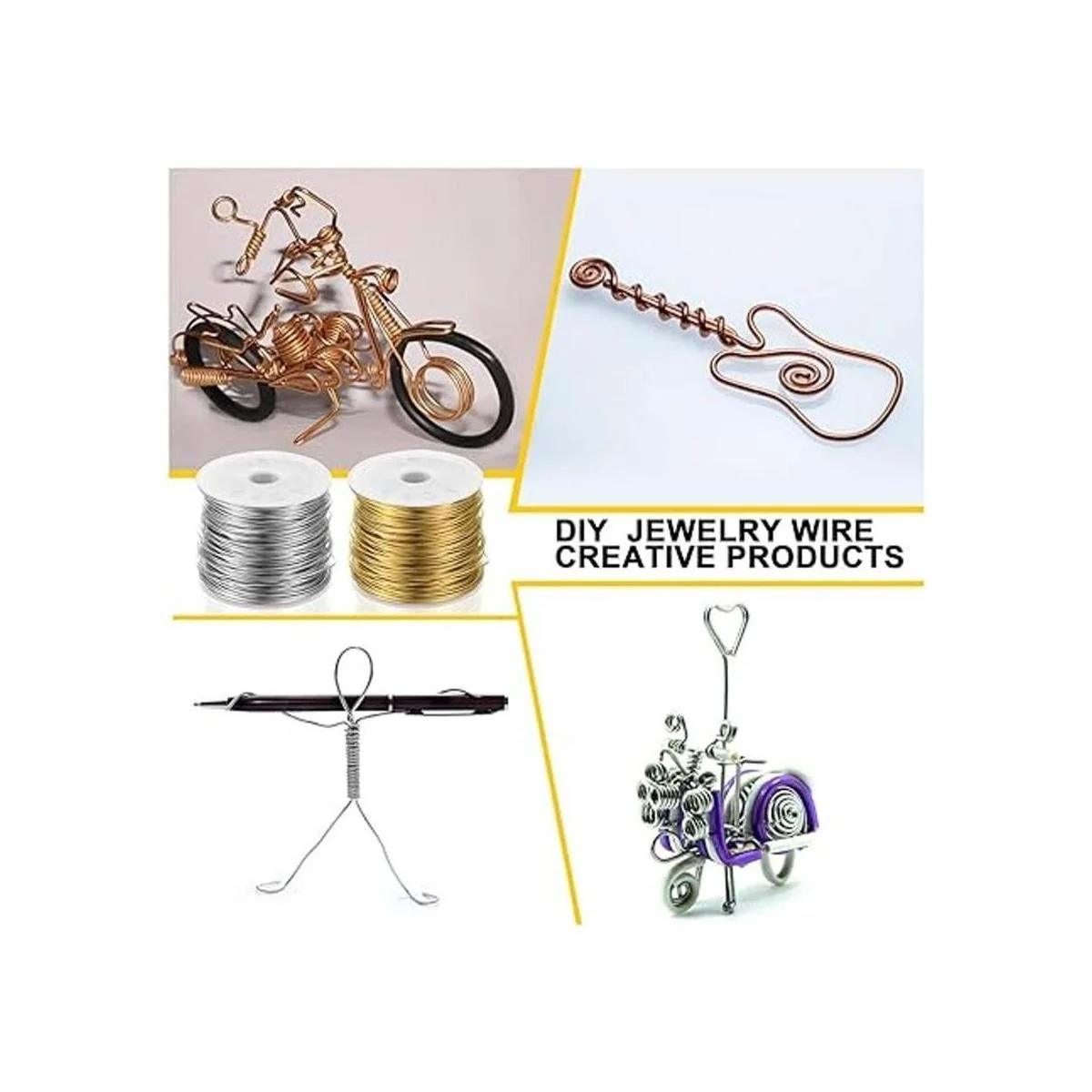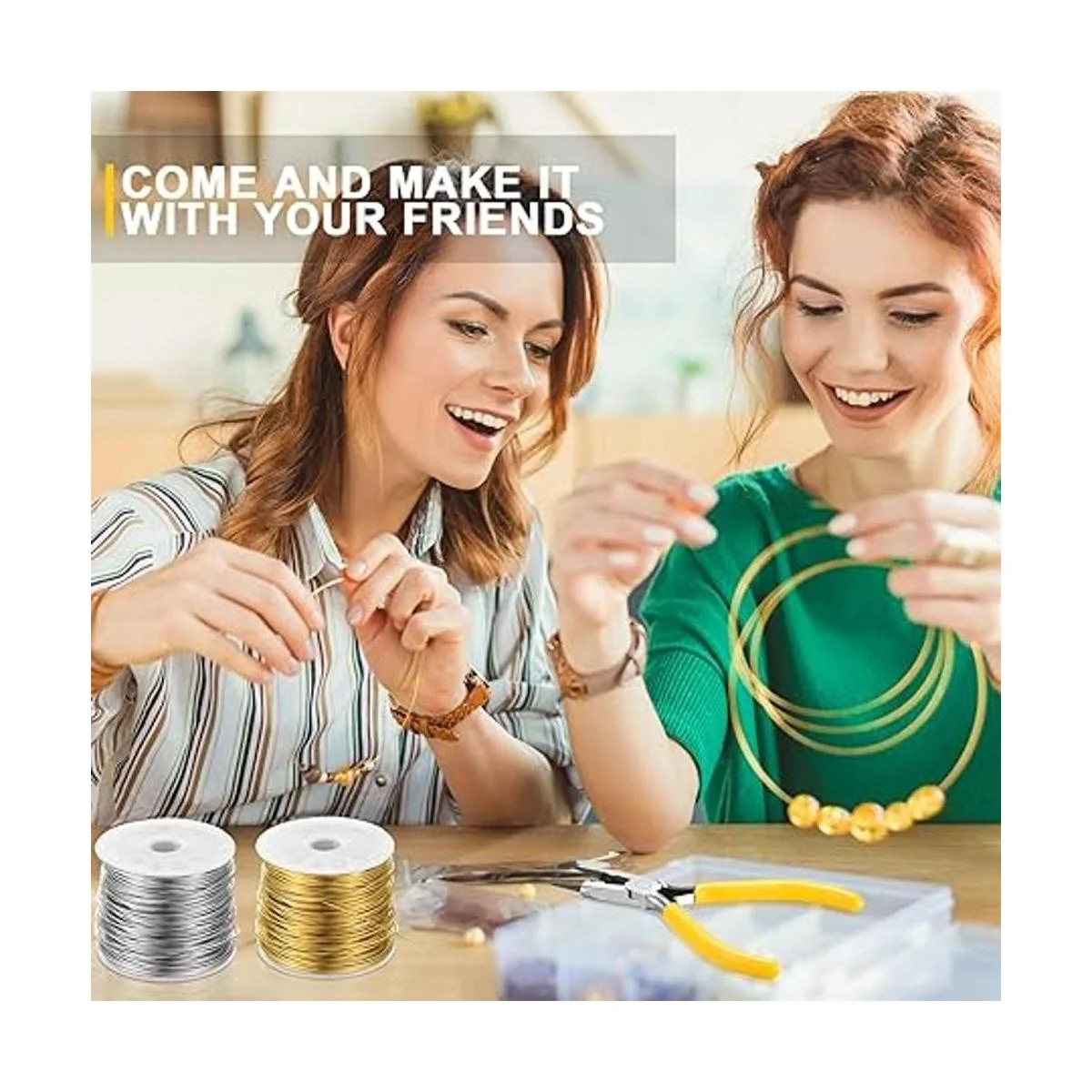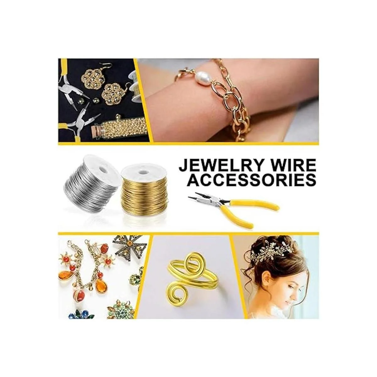 2 rollos de alambre y alicates de calibre 20 resistentes para hacer joyas, alambre de cobre para joyas, alambre de cuentas para manualidades, suministros de fabricación de joyas, plata y oro, 0.031 in