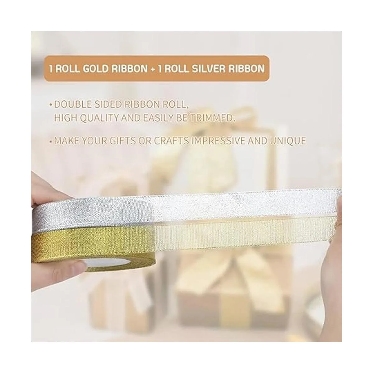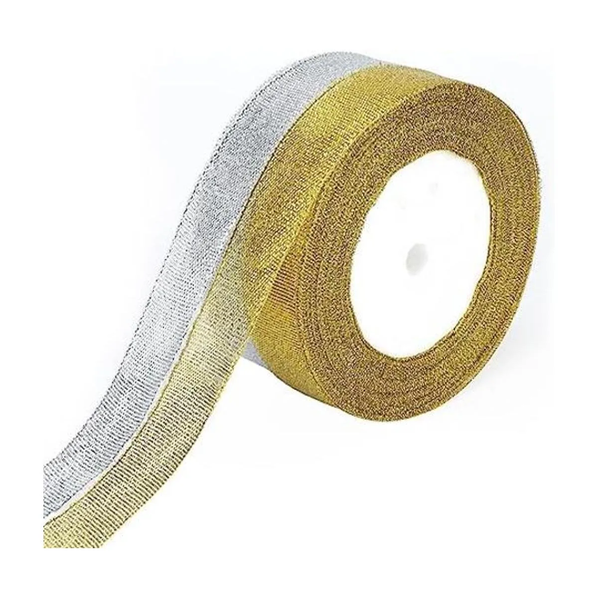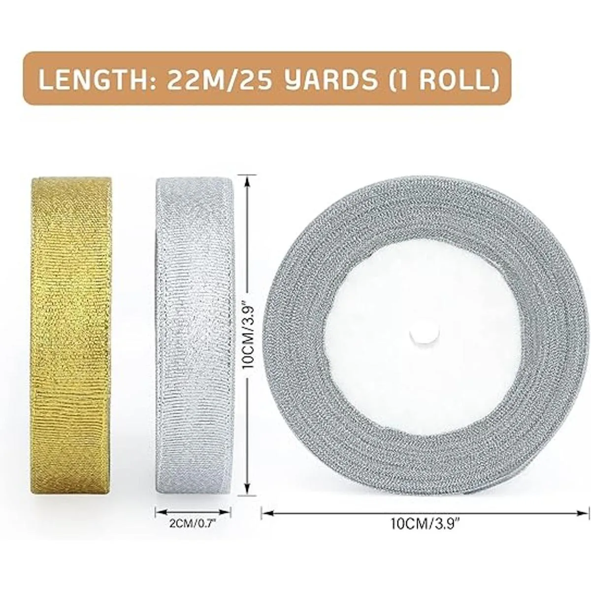2 rollos de cinta de 50 yardas con purpurina metálica dorada y plateada, cinta de tela brillante de 3/4 pulgadas de ancho para envolver regalos, manualidades, boda, cumpleaños, decoración de fiesta (1 rollo de 25 yardas, cinta dorada y plateada)