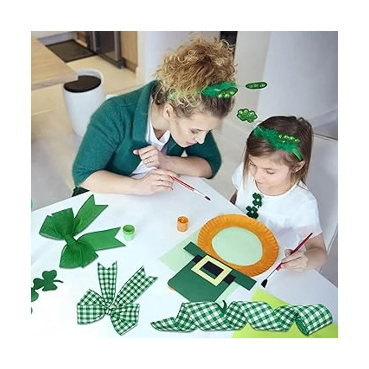 Amplia aplicación: estas cintas de manualidades son ideales para hacer tus decoraciones de manualidades del día de San Patricio, adecuadas para coronas florales, envolver regalos, guirnaldas, cestas de regalo, decoraciones de granja, decoración de fiesta, puerta delantera, balcón de escalera, sala de estar, embalaje de pasteles, lazos, diademas, manualidades de costura y otras decoraciones de manualidades.