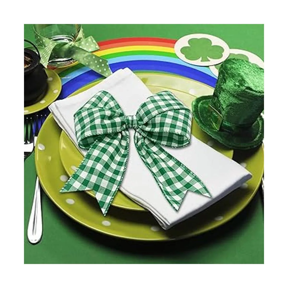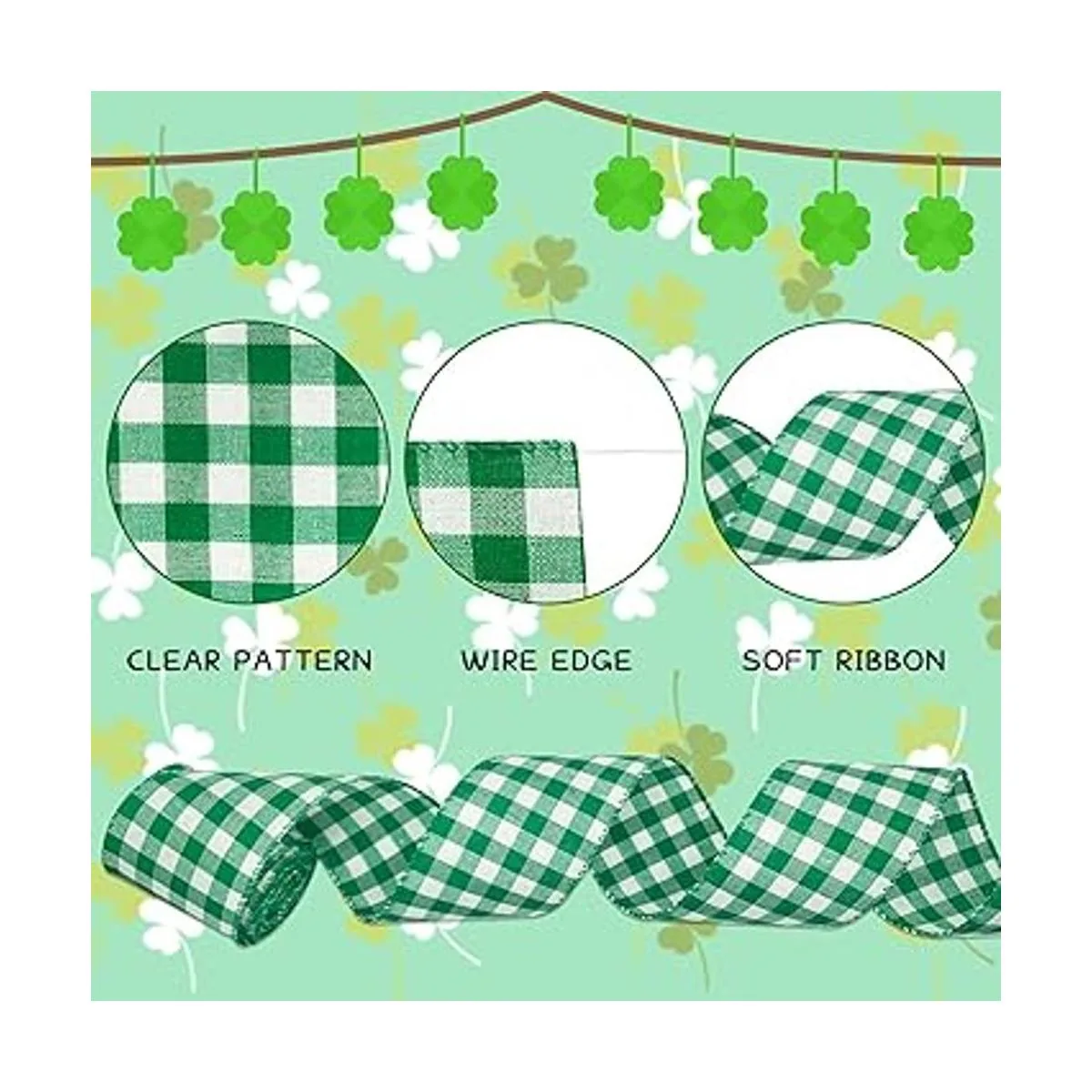Diseño clásico: las cintas de tela a cuadros están diseñadas en patrones clásicos, que incluyen patrones de cuadros verdes y blancos y cintas verdes clásicas, el color de primavera es muy adecuado para el día de San Patricio y muchos otros festivales, aportando un ambiente festivo a tu casa.