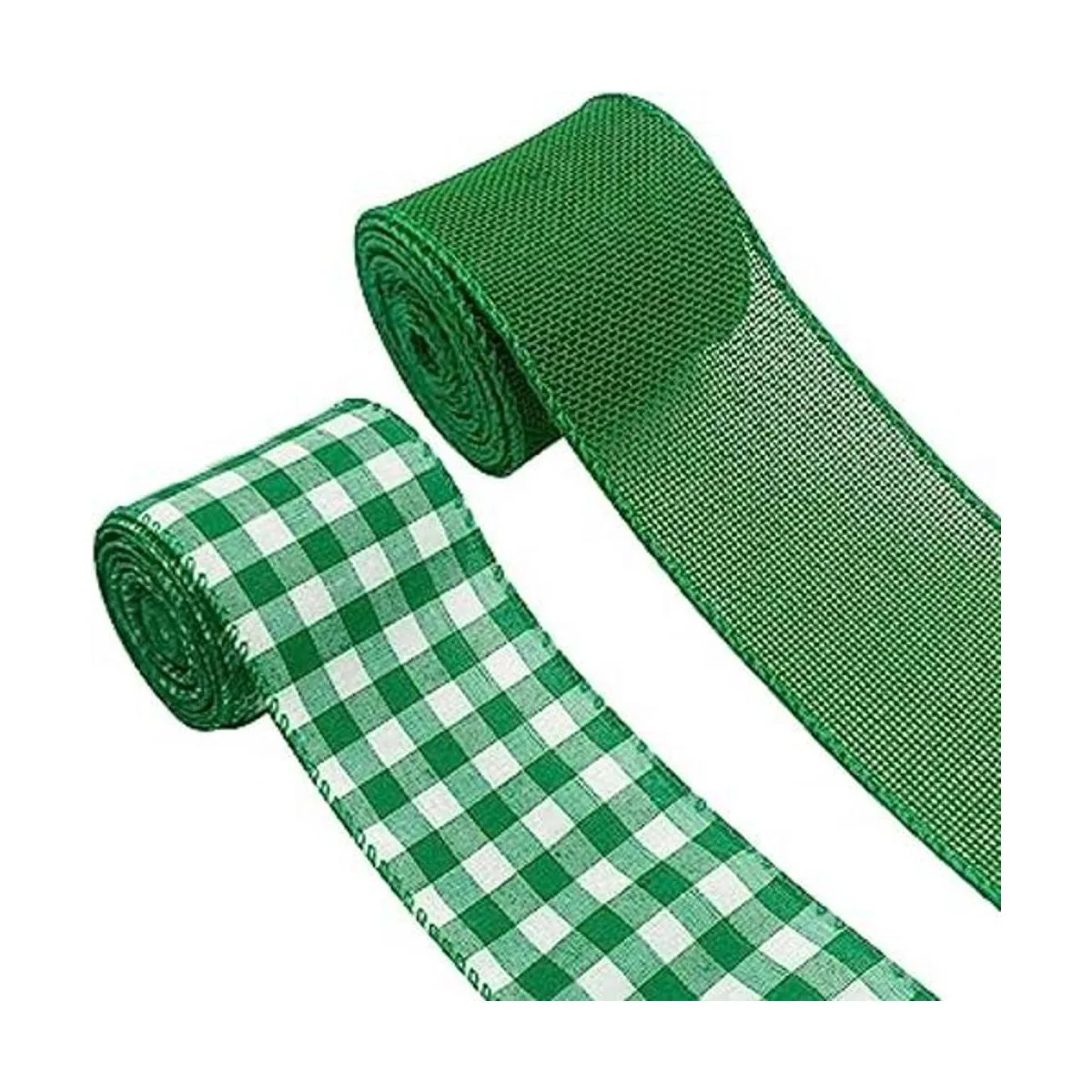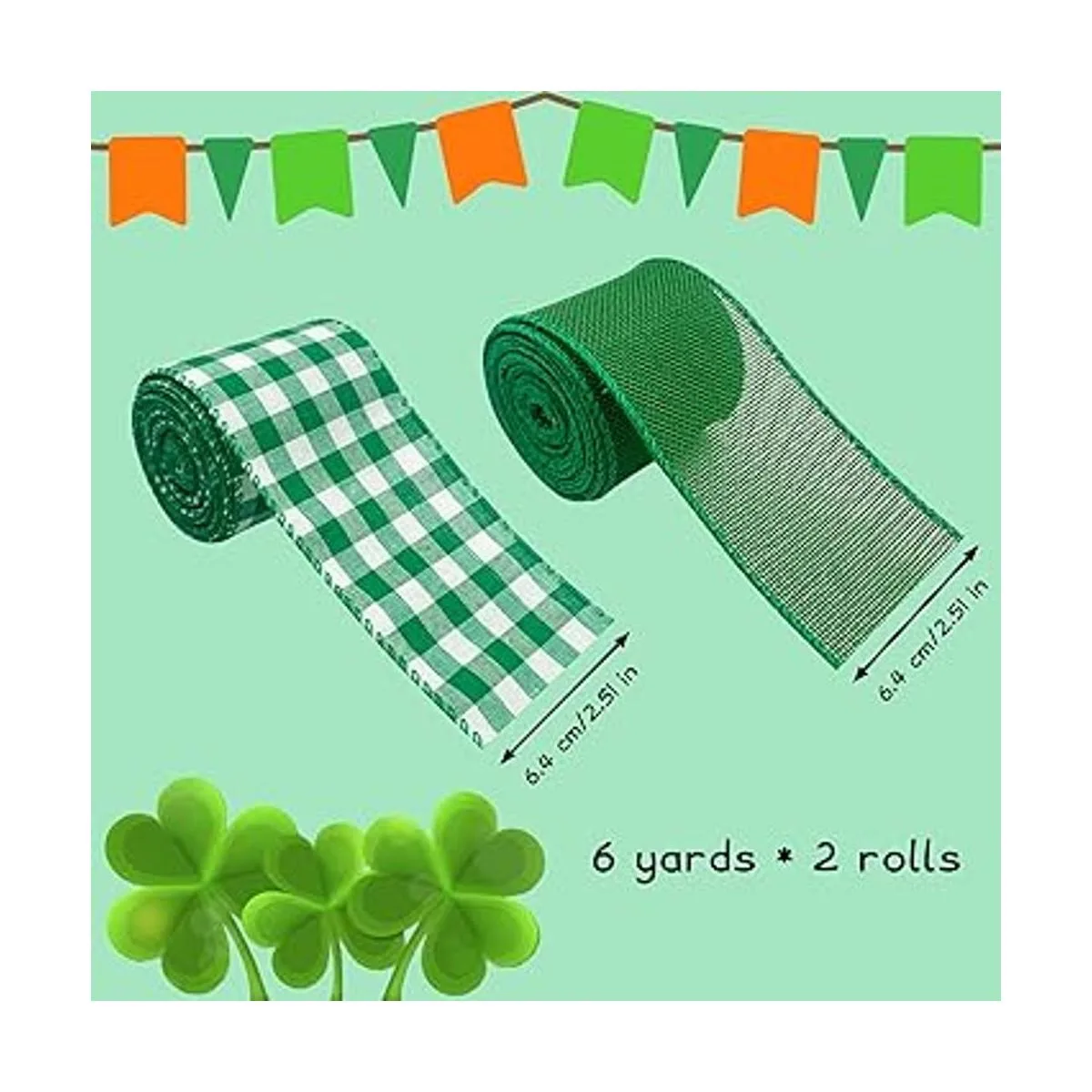 2 rollos de cintas con borde de alambre de búfalo de 2.5 pulgadas de ancho para el día de San Patricio, cintas de tela verde para festivales irlandeses para envolver regalos, coronas, decoración de fiestas, suministros de manualidades, 12 yardas