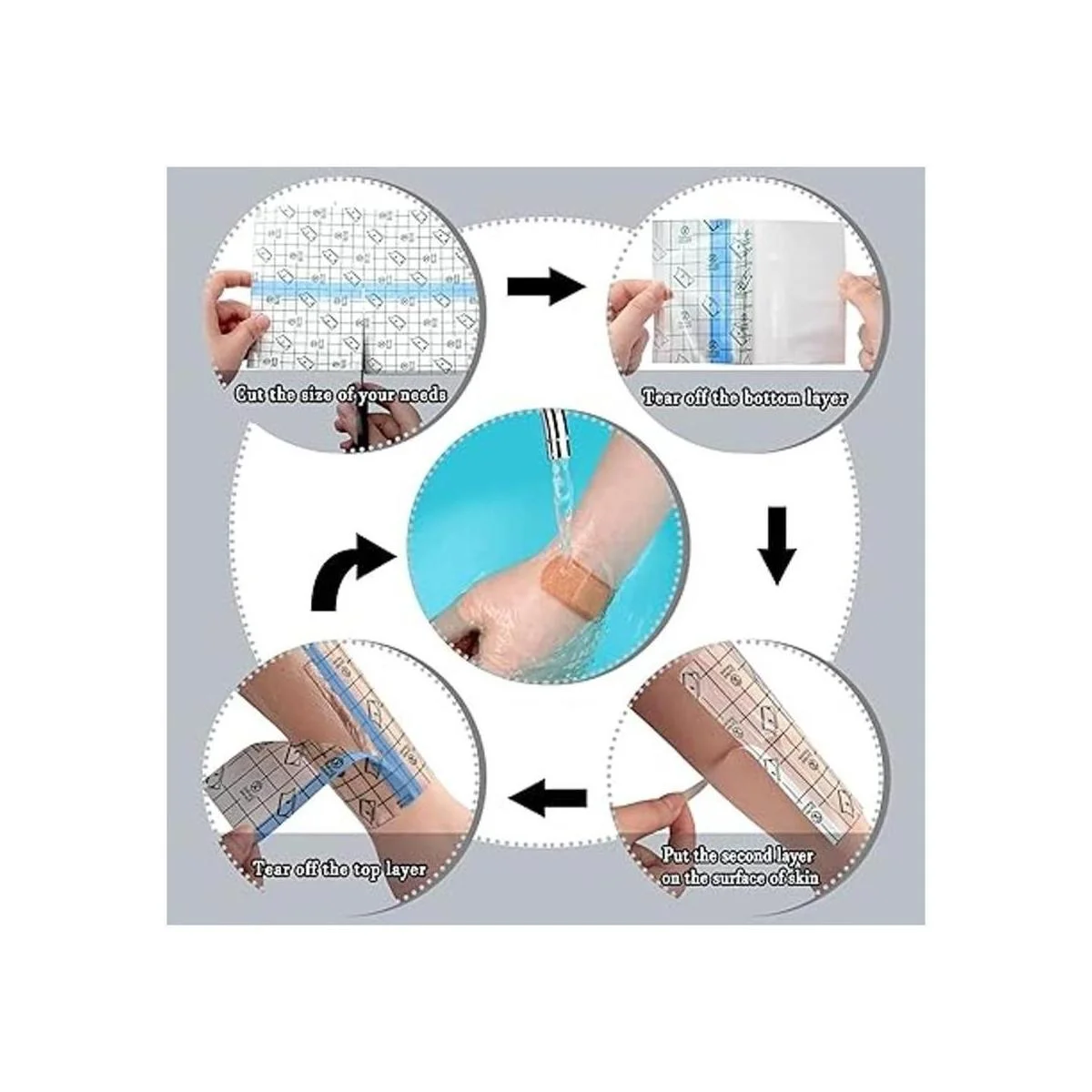 2 rollos de vendaje adhesivo transparente elástico impermeable, vendaje para tatuajes de postratamiento, vendaje redondo, transparente, cinta adhesiva transparente para tatuajes de ducha, 2 tamaños