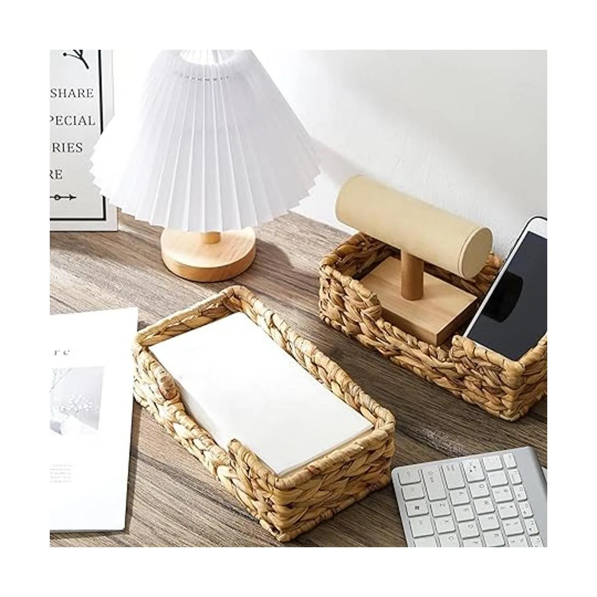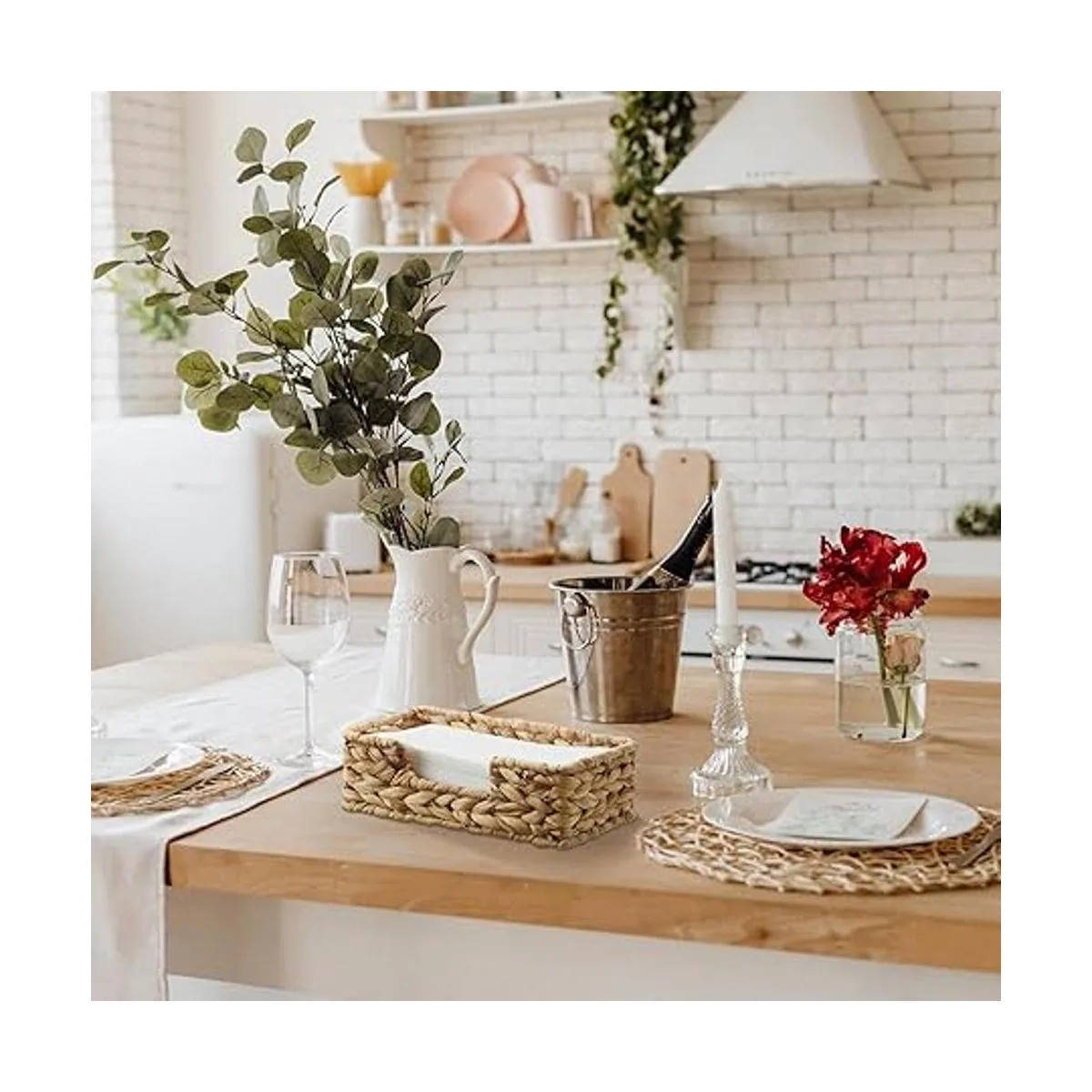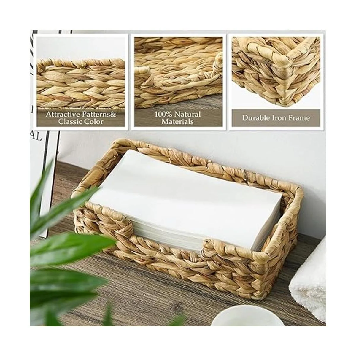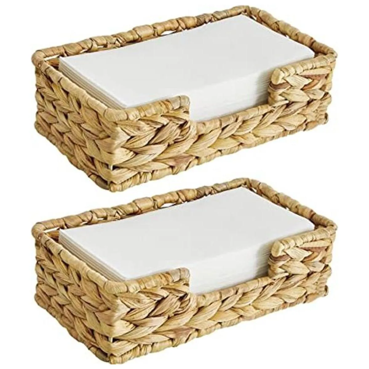 2 servilletas de jacinto de agua, cestas de mimbre rústicas de mimbre de papel de mimbre para toallas de mano, bandeja de almacenamiento tejida para servilletas, para cocina, comedor, baño, tocador, encimera