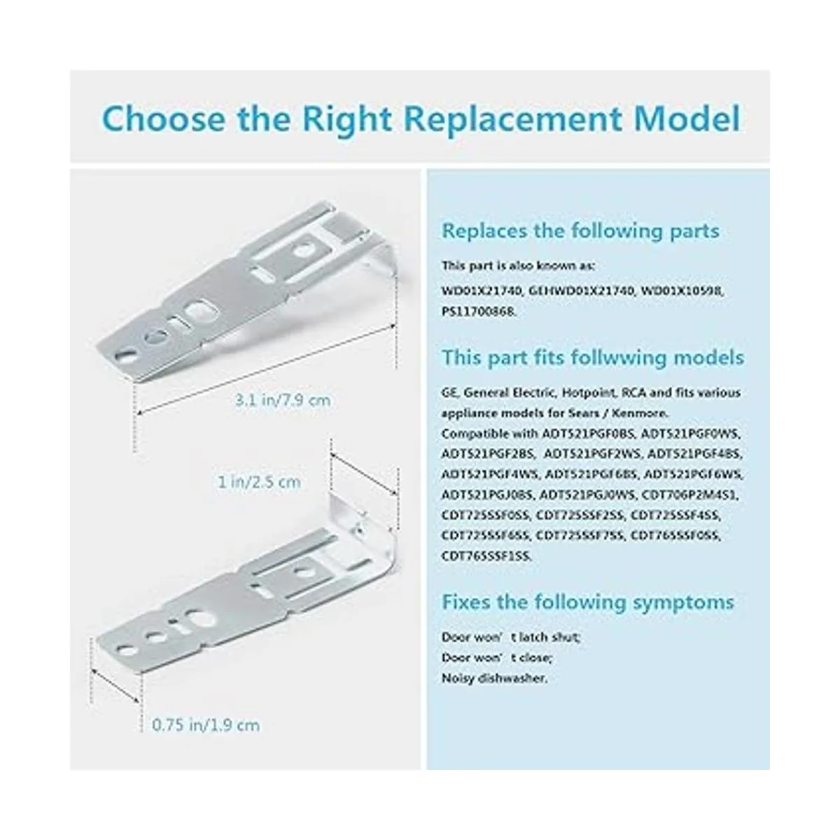 Reemplazo perfecto: nuestro paquete de 2 soportes para encimera de lavavajillas WD01X21740 reemplaza los números de pieza: WD01X10598, GEHWD01X21740, WD01X21740, PS11700868, etc.