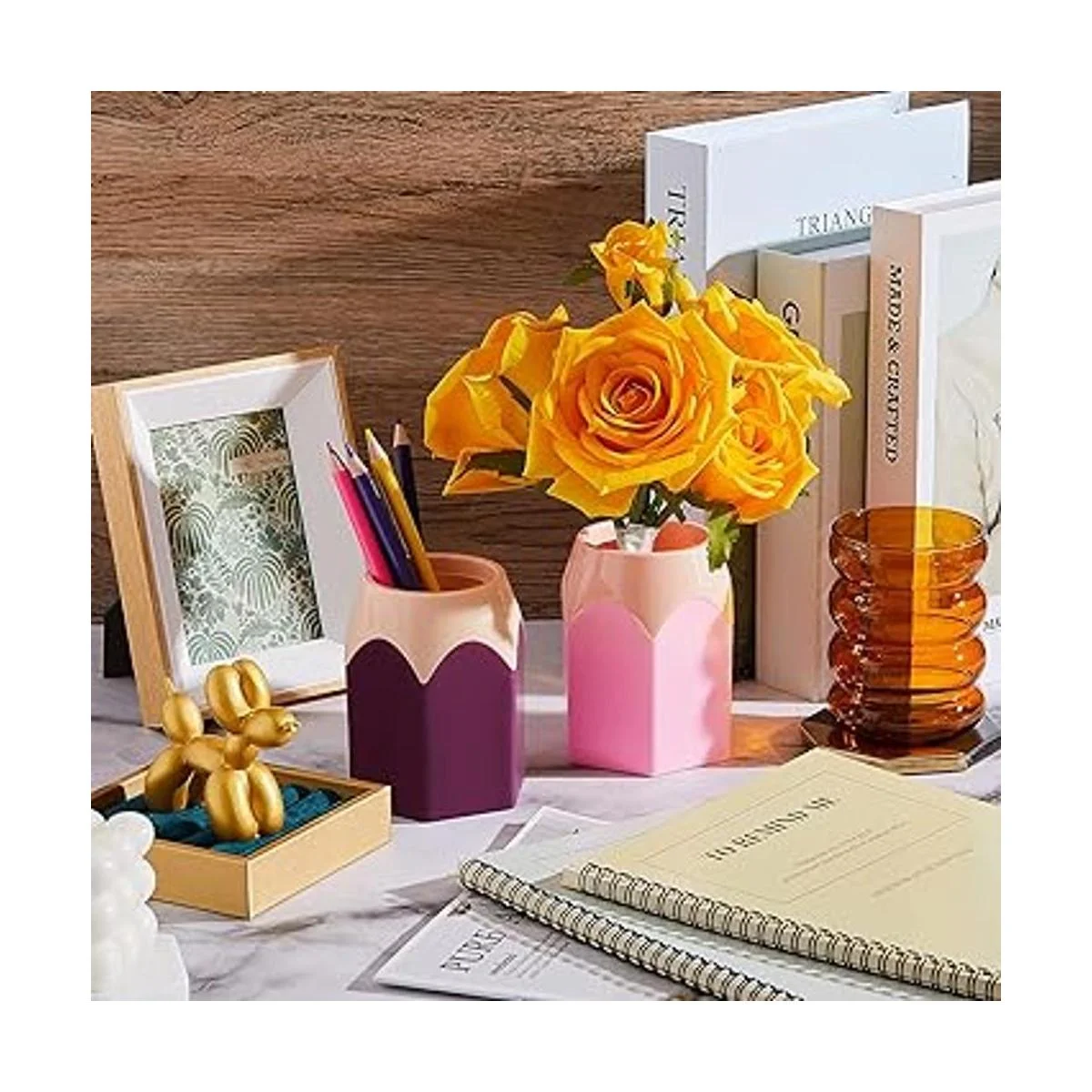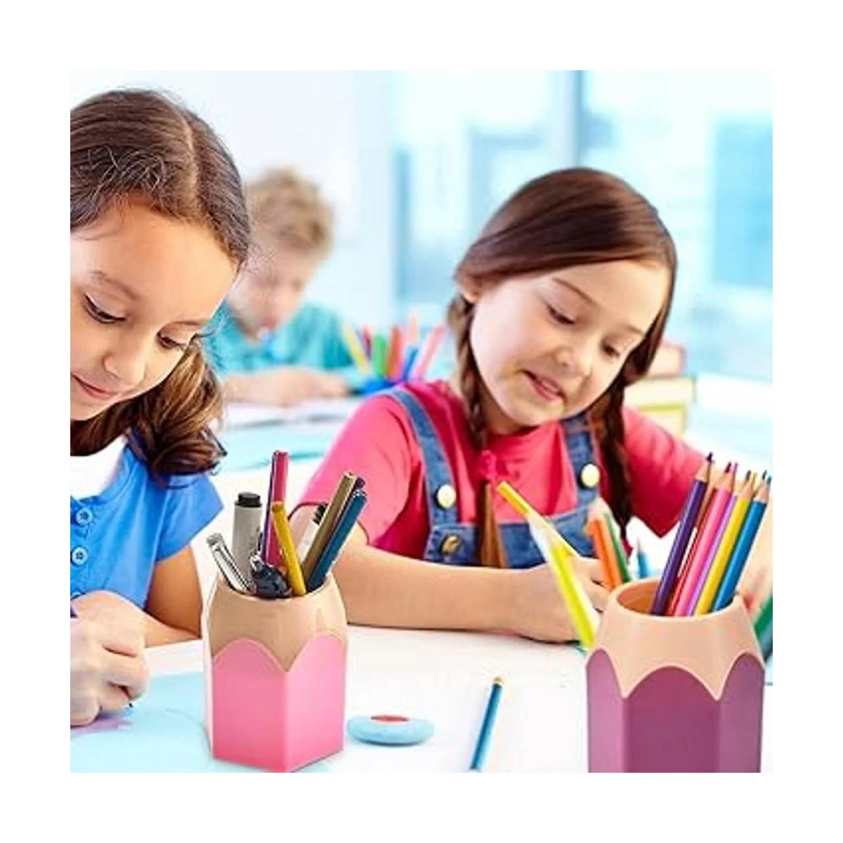 Gran capacidad: este vaso de colores tiene una amplia gama de usos; además de almacenar bolígrafos, gomas de borrar, reglas, crayones, etc., también es adecuado para brochas de maquillaje y pintalabios