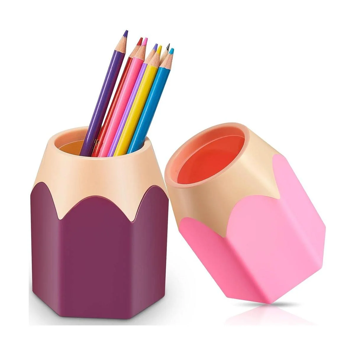 2 soportes para lápices en forma de lápiz, organizador de almacenamiento de lápices, lindo vaso de escritorio, jarrón colorido, maceta de dibujos animados, papelería para el aula, suministros de oficina en el hogar, decoración de escritorio rosa, morado
