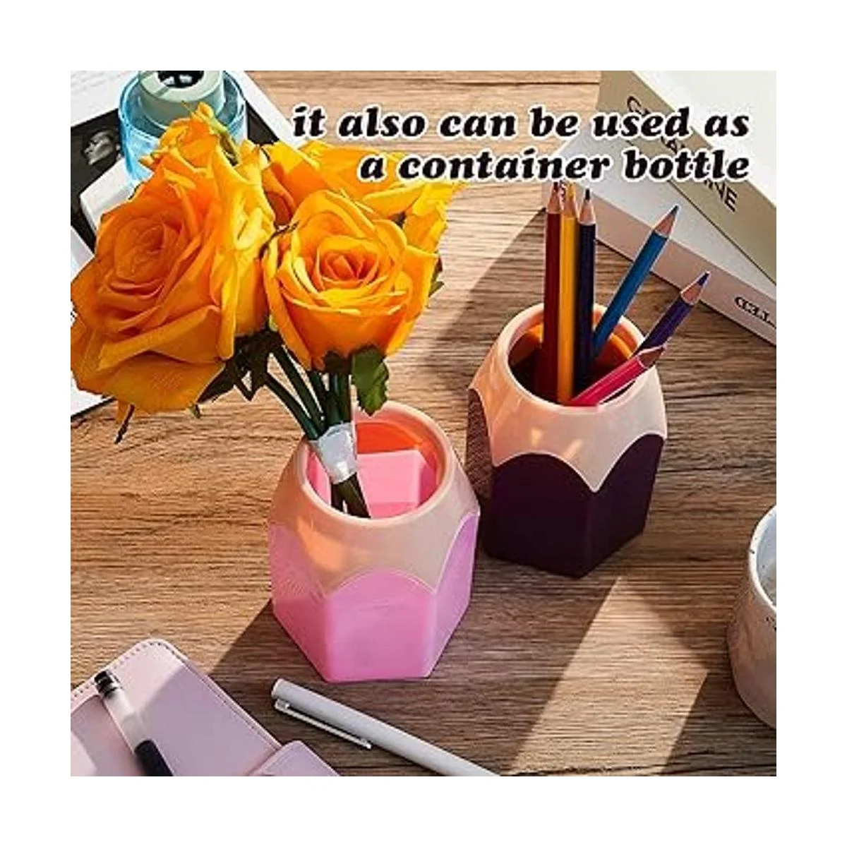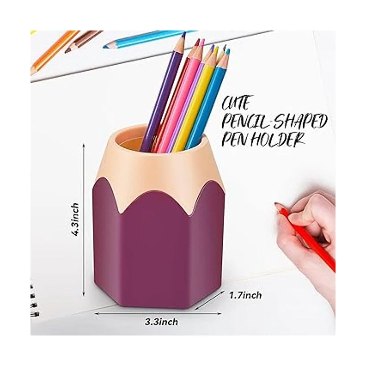 Material seguro: el soporte para bolígrafos con forma de lápiz está hecho de plástico, que es duradero, no se decolora, no se deforma fácilmente y se puede aplicar durante mucho tiempo; es fácil de limpiar y el color se puede mantener