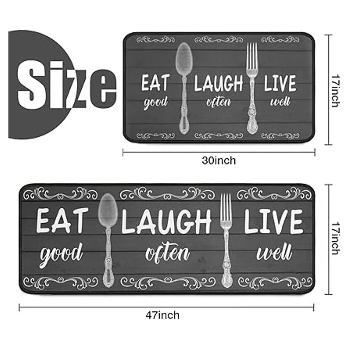 Tamaño: el juego de alfombrillas de cocina contiene 2 alfombrillas rectangulares 17 x 30 pulgadas y 17 x 47 pulgadas, 0.3 pulgadas de grosor que proporciona una mezcla perfecta de apoyo y comodidad para estar de pie.