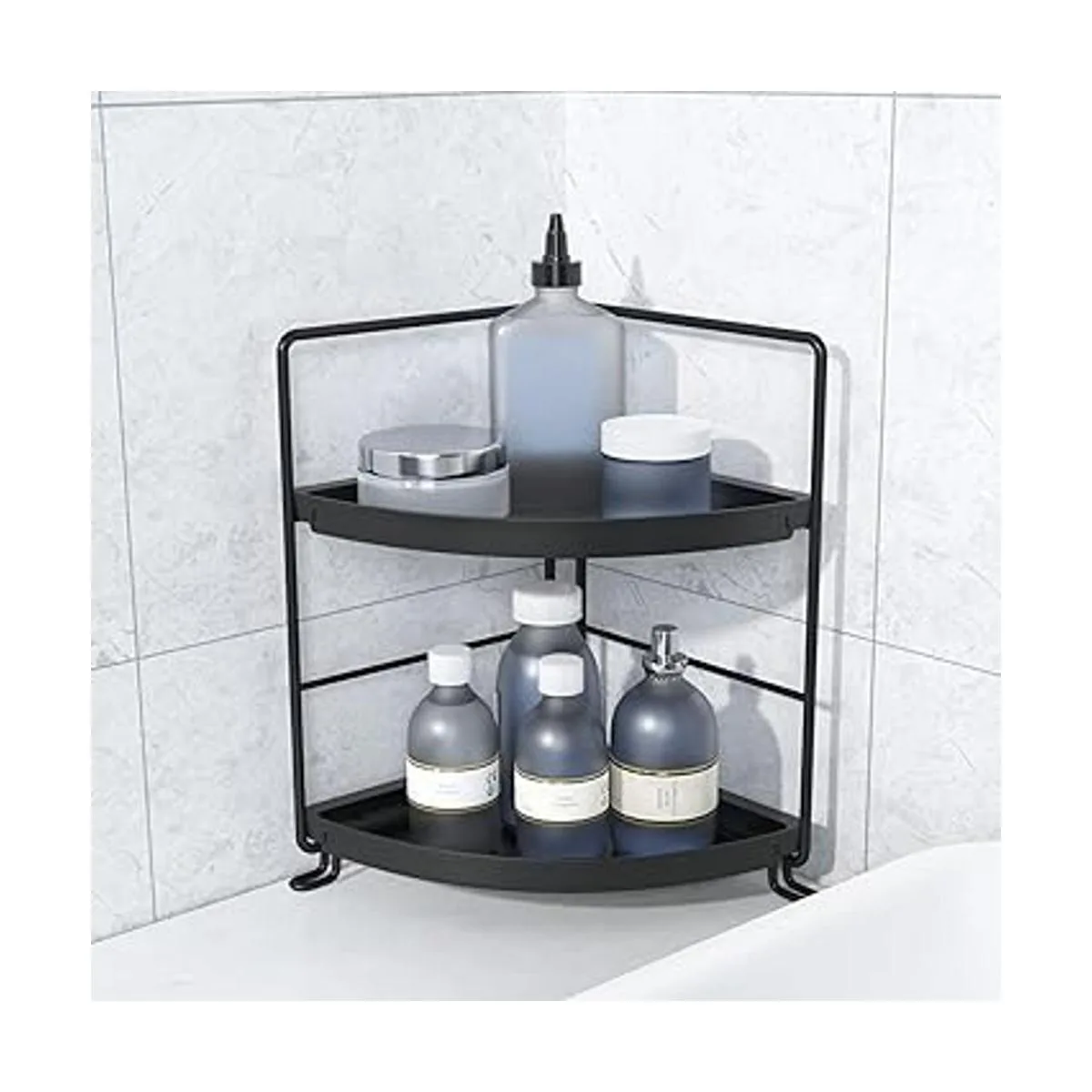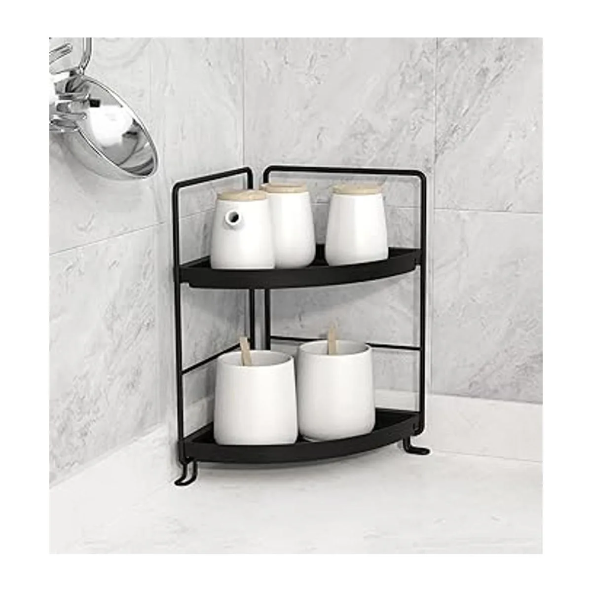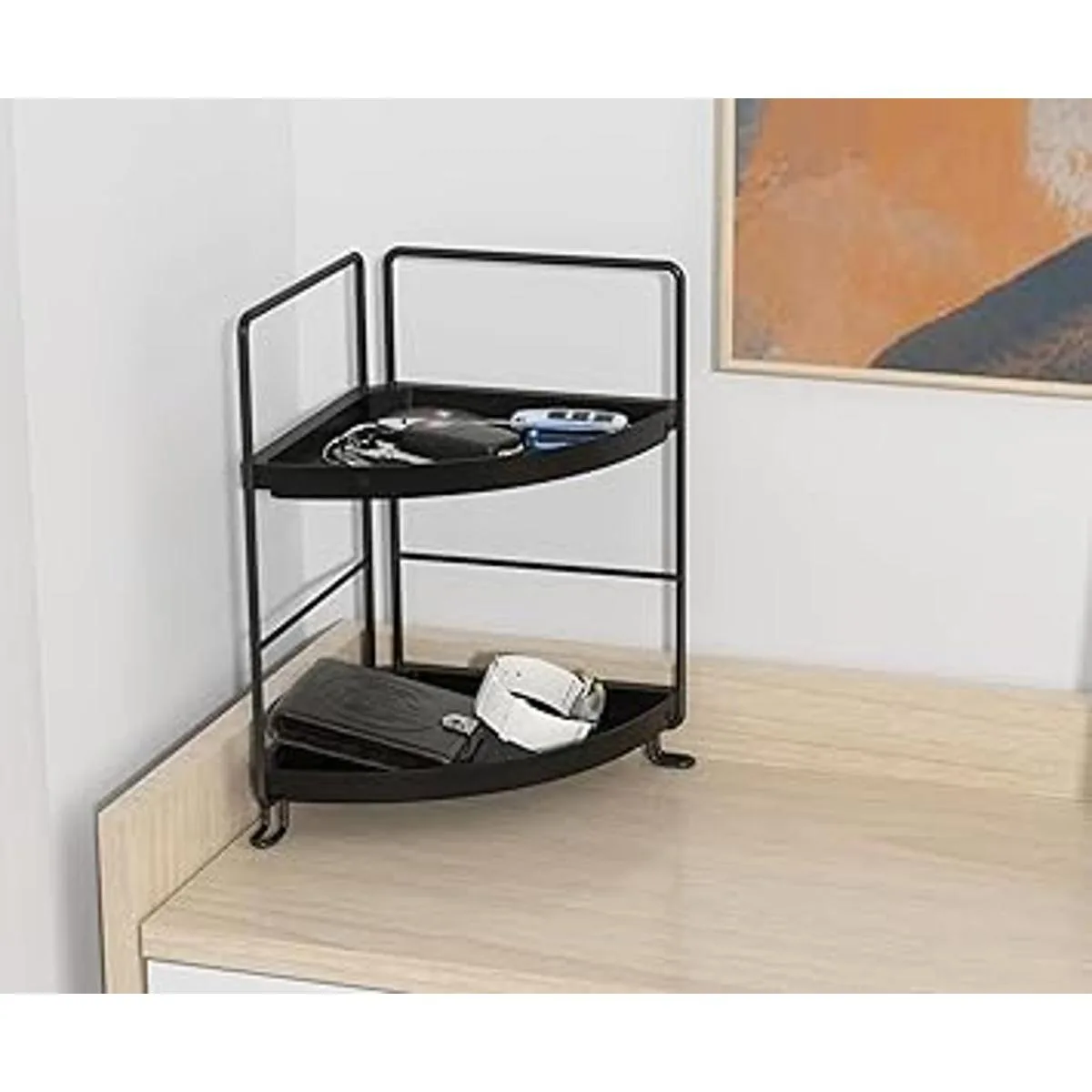 2 Tier Corner Bathroom Countertop Organizer, Stackable Storage Shelf for Vanity Makeup Perfume Shelf , Kitchen Spice Rack or Bedroom Small Object Storage Standing Counter Black