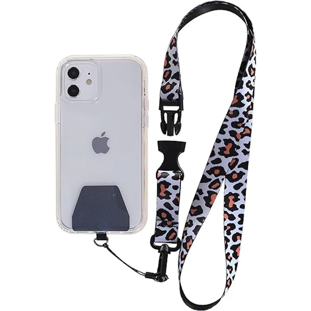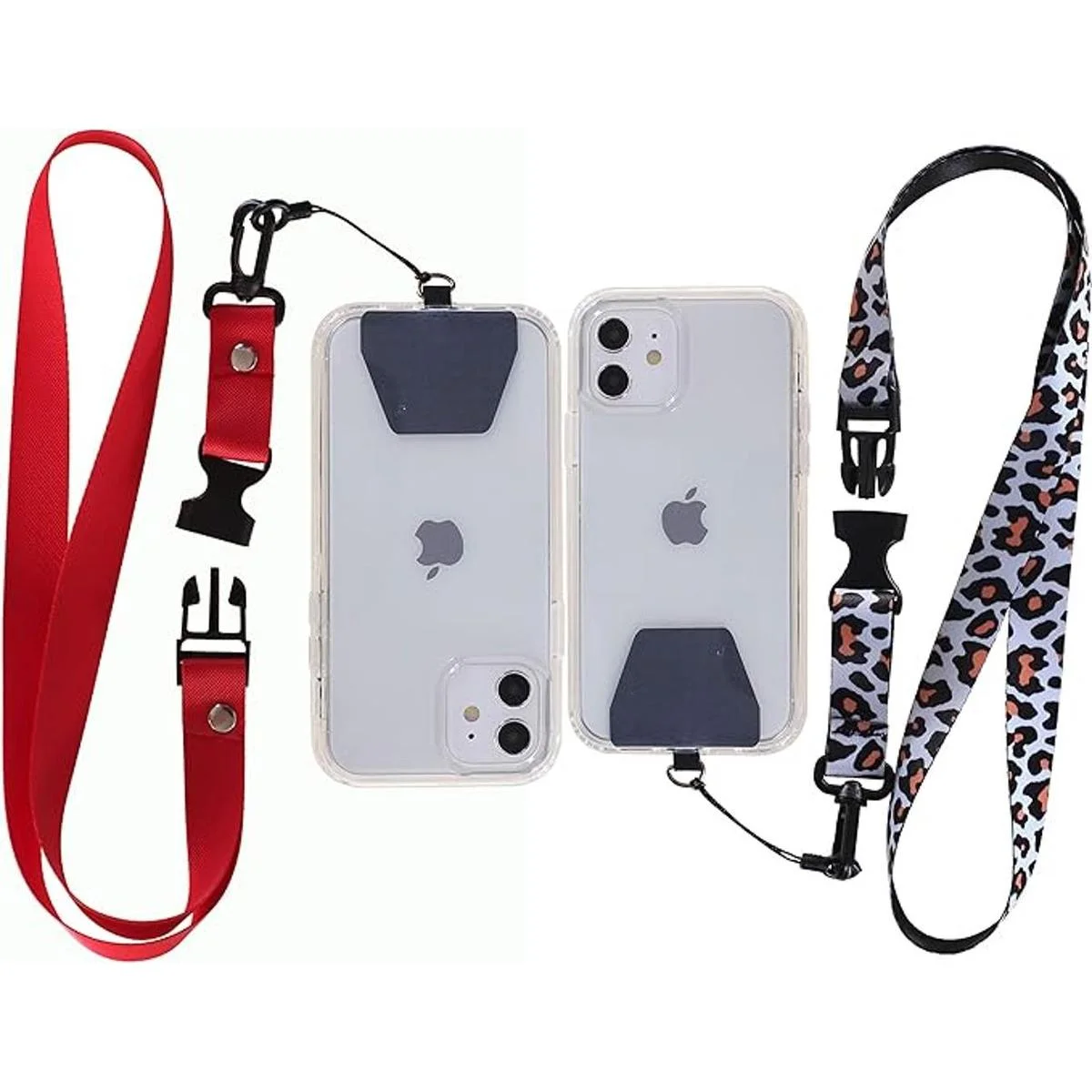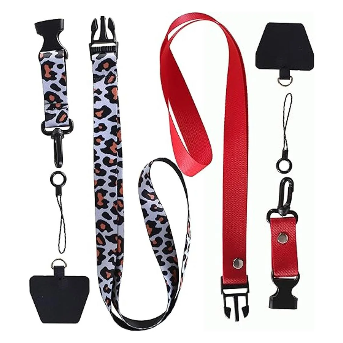 2 unidades Correa de sujeción universal desmontable para el cuello con parche para la mayoría de la funda del teléfono celular y iPhone rojoleopardo