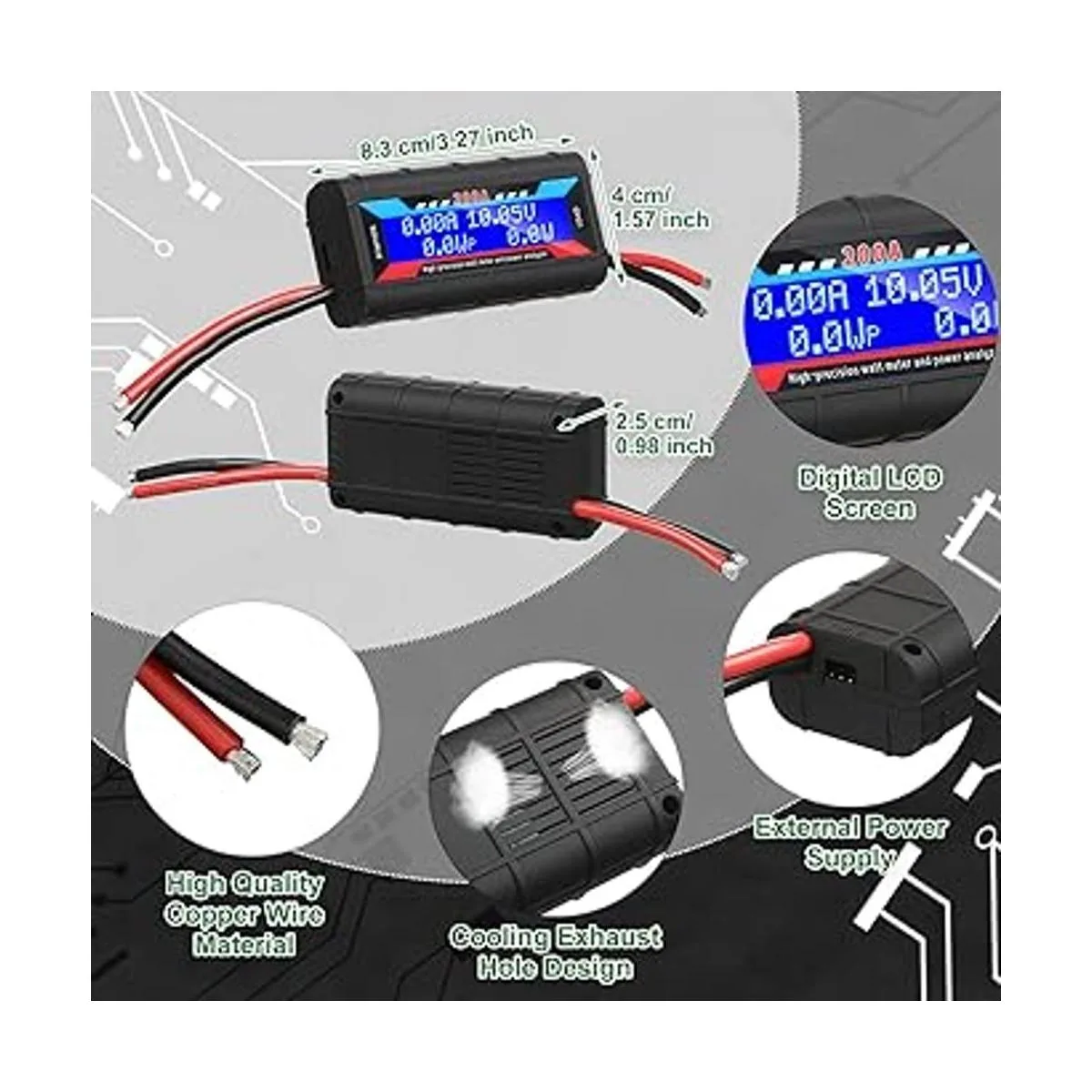 Versátil de aplicar: nuestro analizador de potencia con alta precisión es multiusos de usar, puede satisfacer tus diversas necesidades de trabajo; por ejemplo, hace bien para evaluar la eficiencia de carga de batería RC, la energía del dispositivo alimentado por batería y el consumo de energía, y puede medir el voltaje de funcionamiento, para que la batería, el motor, el cableado, el conector puedan funcionar correctamente