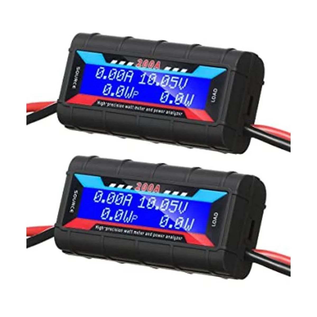 2 unidades de analizador de potencia de alta precisión, medidor de vatios de alta precisión, monitor de rendimiento de batería, amplificador medidor de potencia con retroiluminación, pantalla LCD digital para descarga de corriente de voltaje solar RC (200 A)