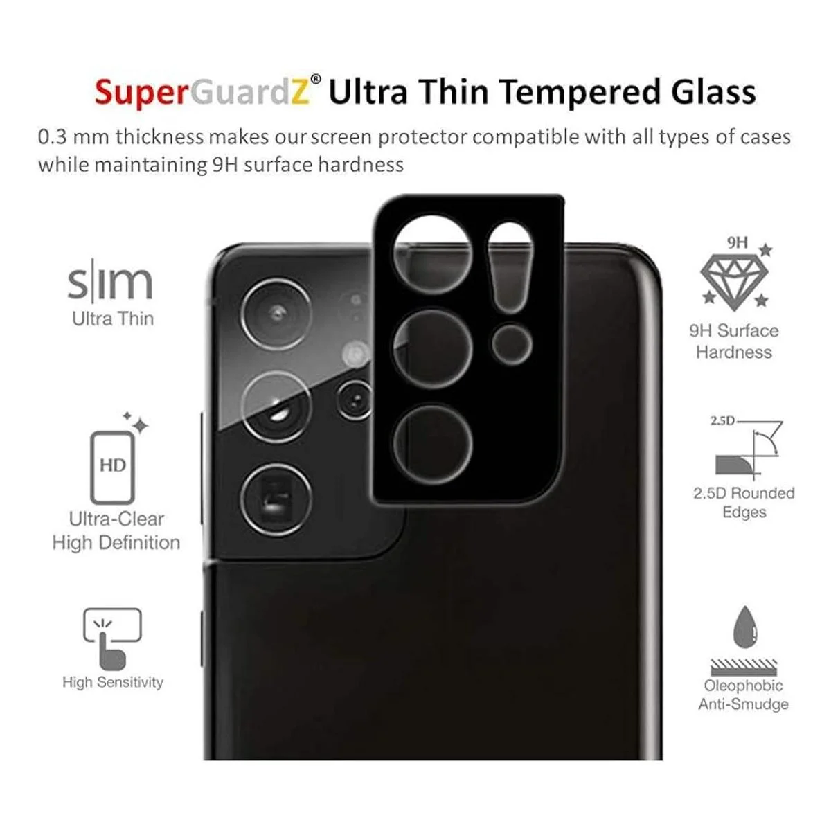 2 unidades para lente de cámara trasera de Samsung Galaxy S21 Ultra 5G Protector de pantalla de vidrio templado, SuperGuardZ, 9H, 0.012 in, antiarañazos, antiburbujas, antihuellas