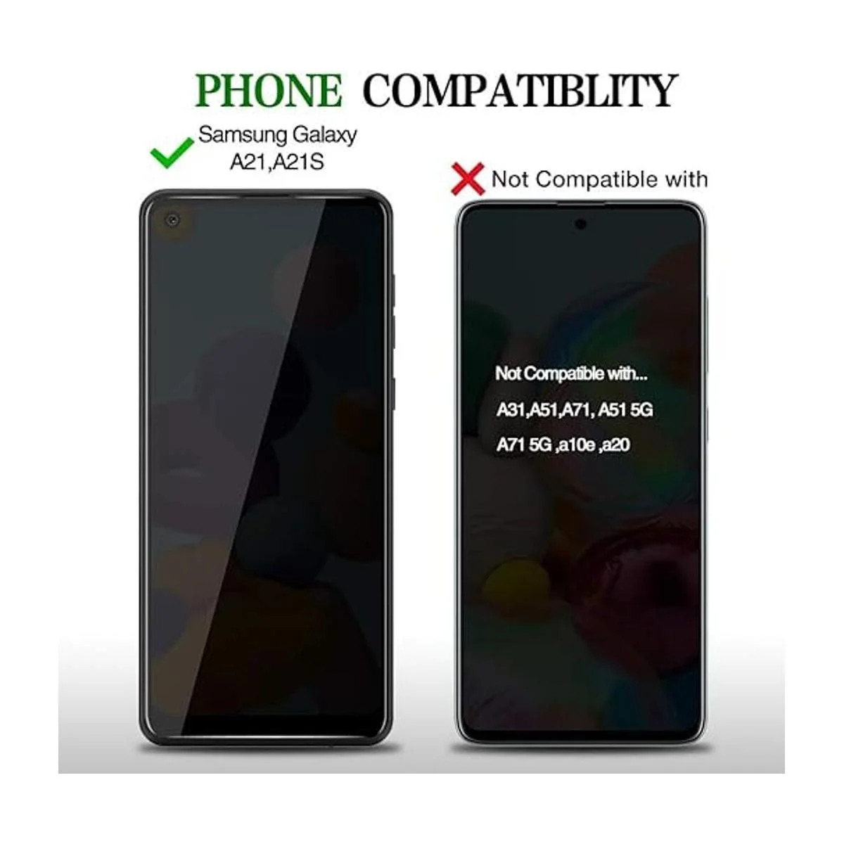 2 unidades para Samsung Galaxy A21A21S Protector de pantalla de privacidad cobertura completa Anti Spy HD Clarity 9H Protector de pantalla de cristal templado, resistente a los arañazos, libre de burbujas, fácil insall, compatible con la funda 6,5 pulgadas