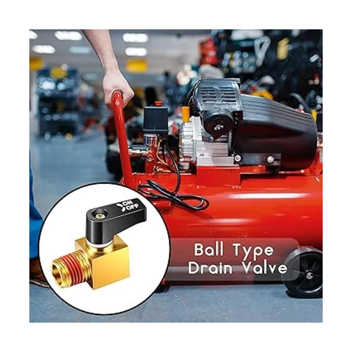2 válvulas de compresor de aire, válvula de drenaje tipo bola, mini válvula de bola de latón, 1/4 pulgada NPT macho x NPT hembra para compresor de aire