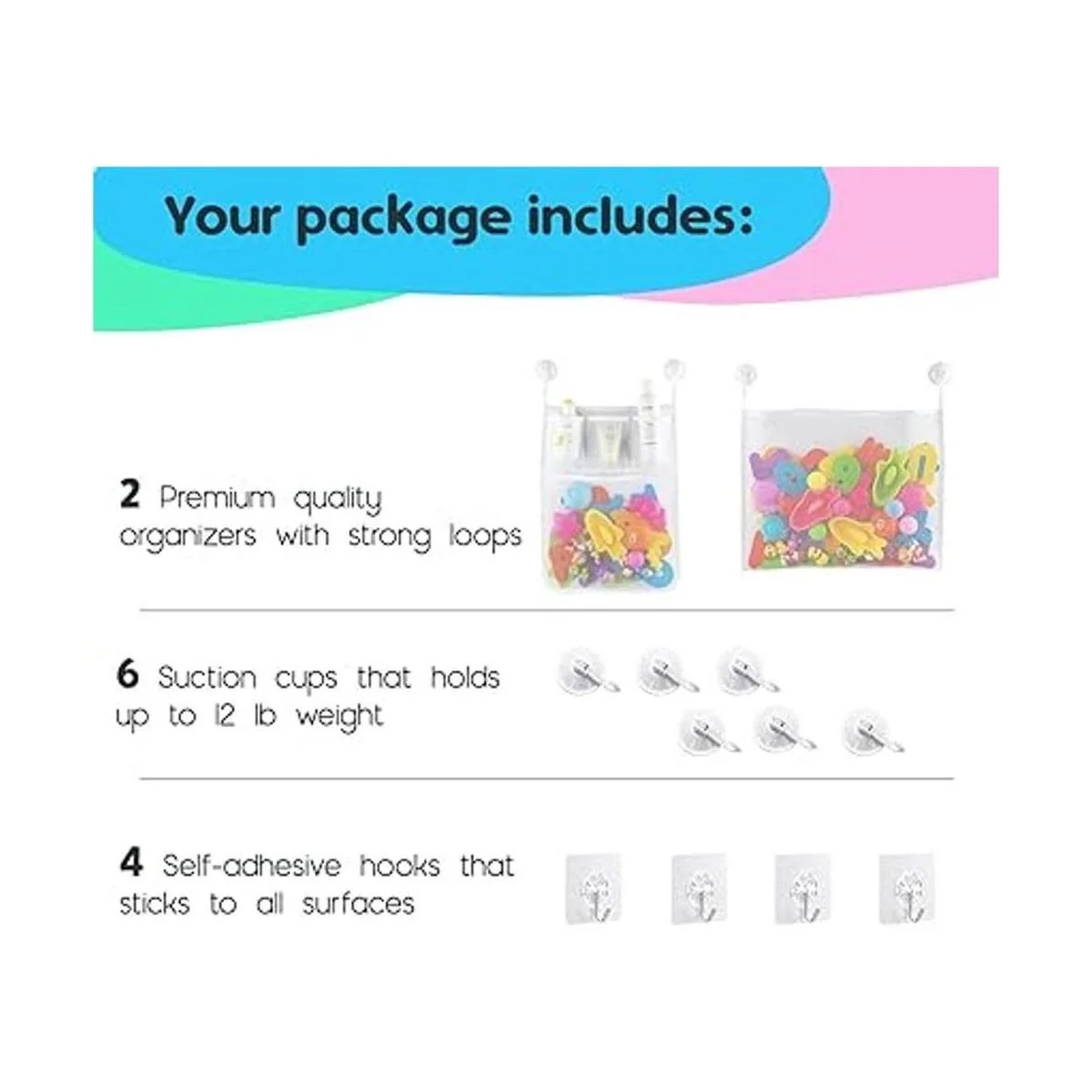 2 x Mesh, Organizador de juguetes para baño 6 ganchos fuertes, bolsas de red perfecta para juguetes para la tina, Estas bolsas organizadoras multifunción hacen que guardar los juguetes para la tina sea más fácil, Para niños, bebés y adultos, Blanco, juego de 2
