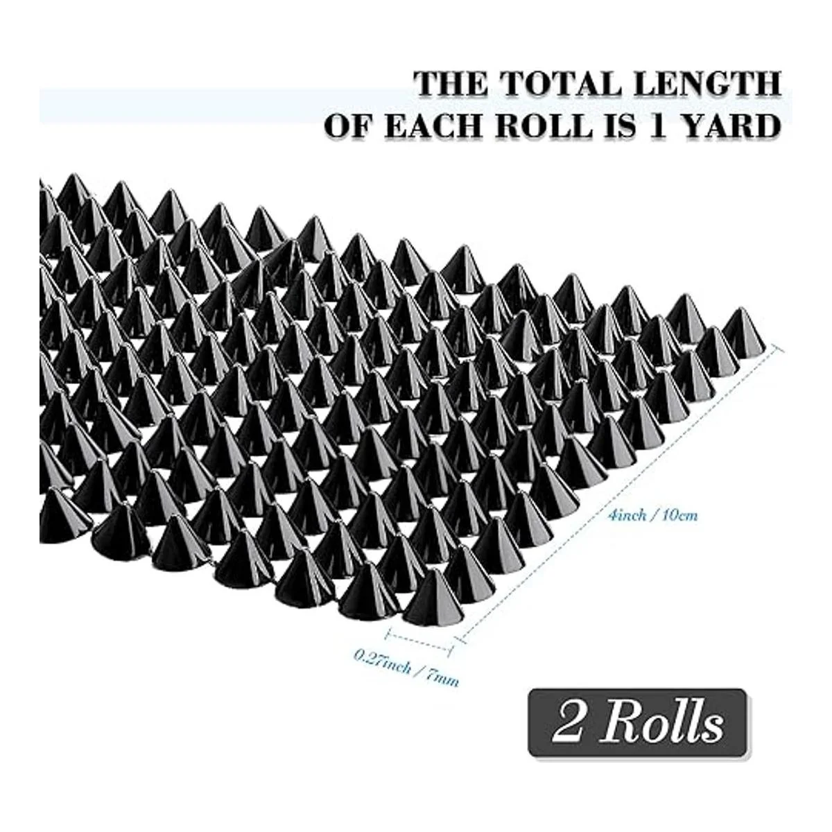 2 yardas de costura en espiga para manualidades, clavos de cono, remaches, cuentas de adorno punk de espalda plana para ropa, boda, actuación, arte y manualidades negro