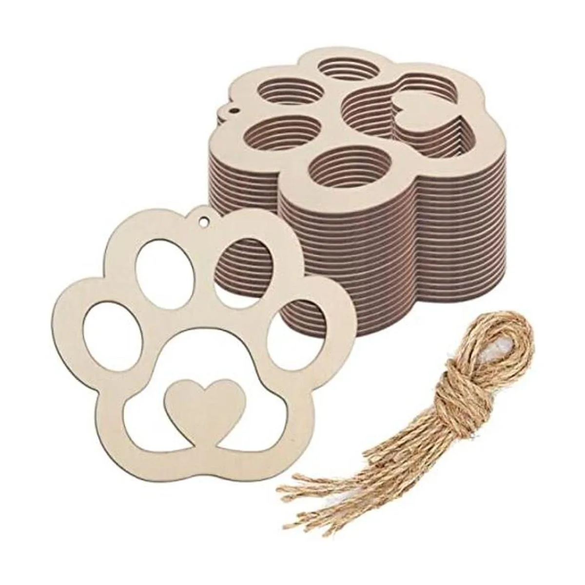20 adornos colgantes de madera con forma de corazón de pata de perro, manualidades para manualidades, garra de gato de madera, con cordeles de yute, etiquetas de regalo para proyectos de bricolaje, perros, mascotas, decoración de fiesta temática