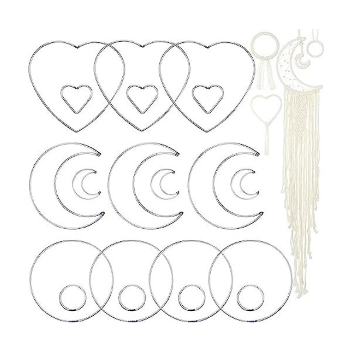 20 anillos de metal para atrapasueños con forma de luna y corazón, anillos de macramé para manualidades, corona, decoración colgante de pared