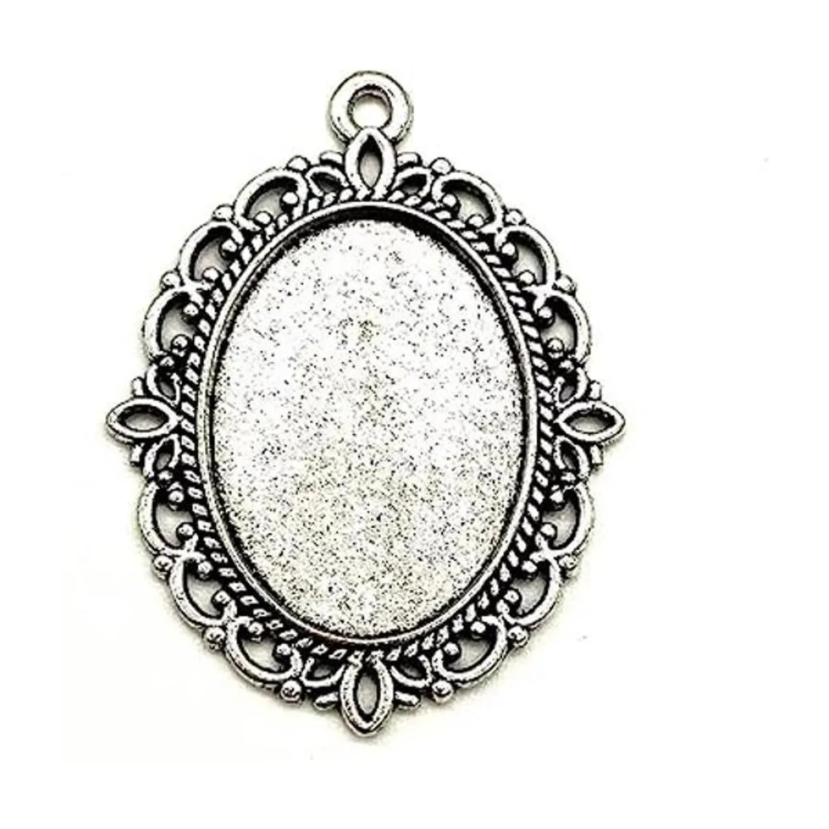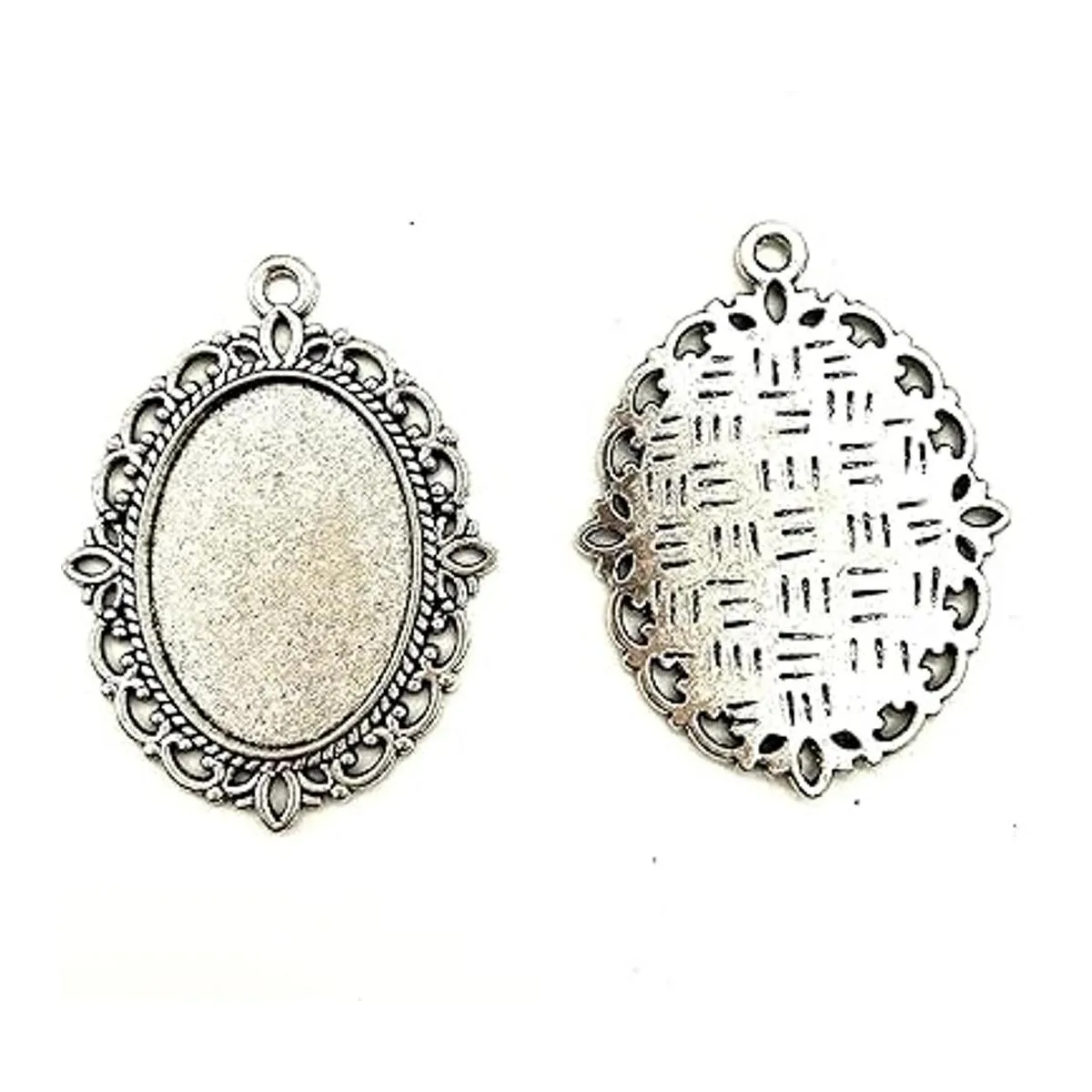 20 bandejas colgantes ovaladas de plata antigua, diseño de cabujones ovalados en blanco, marco de base de metal camafeo para colgar fotos, fabricación de joyas, 0.984 in x 0.709 in