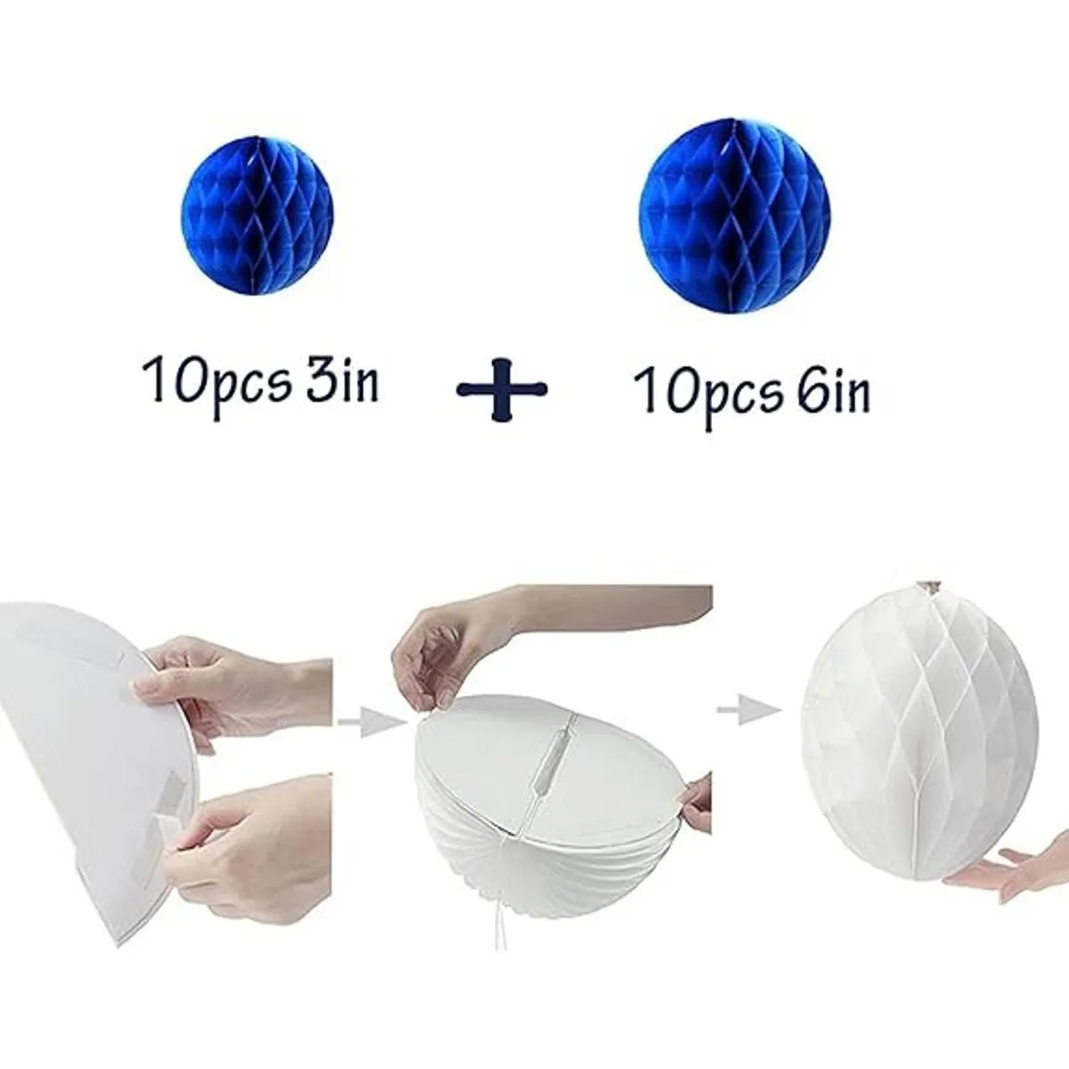 20 bolas de flores de panal de abeja, bolas de papel para decoración de cumpleaños, boda, decoración del hogar 3 6 pulgadas, azul rey