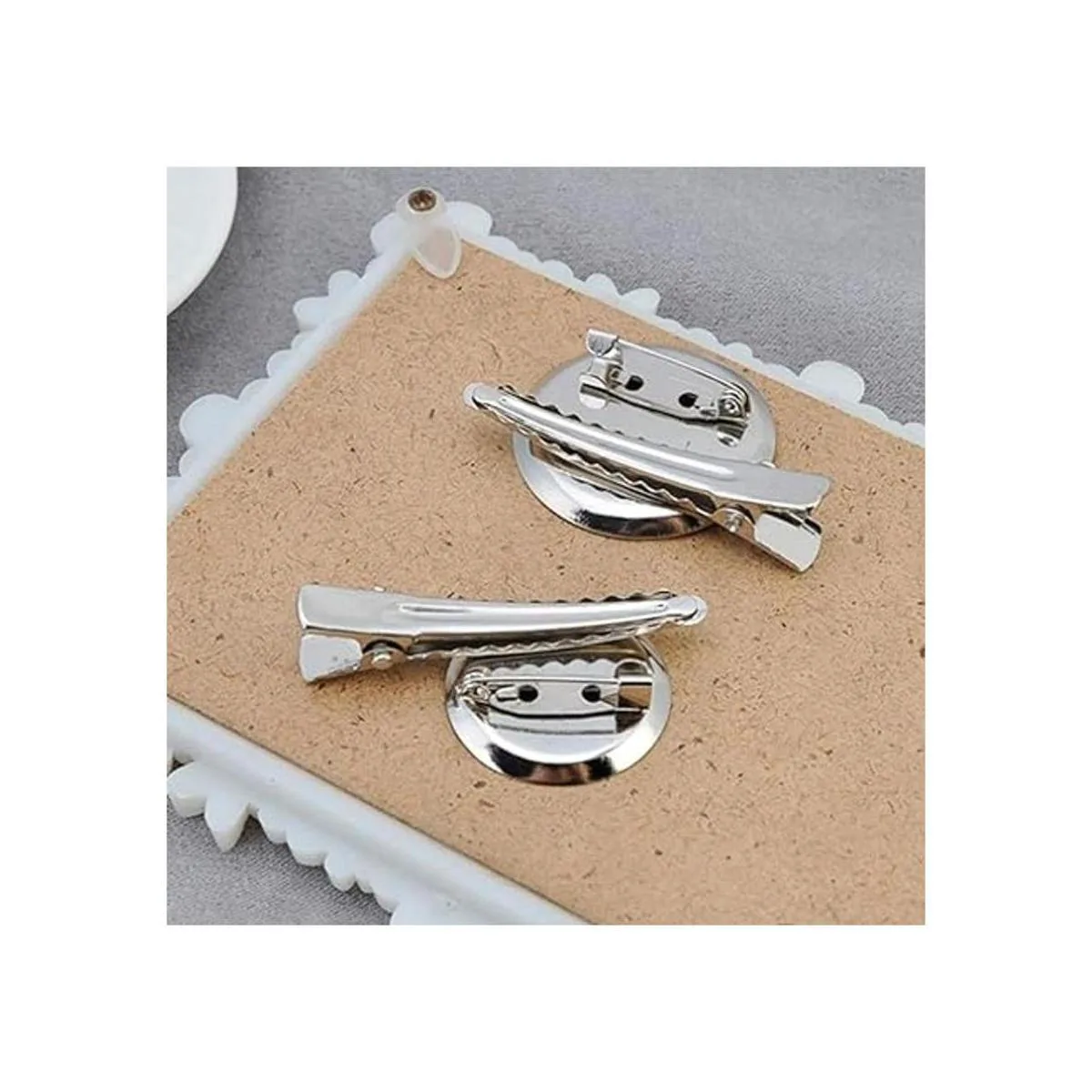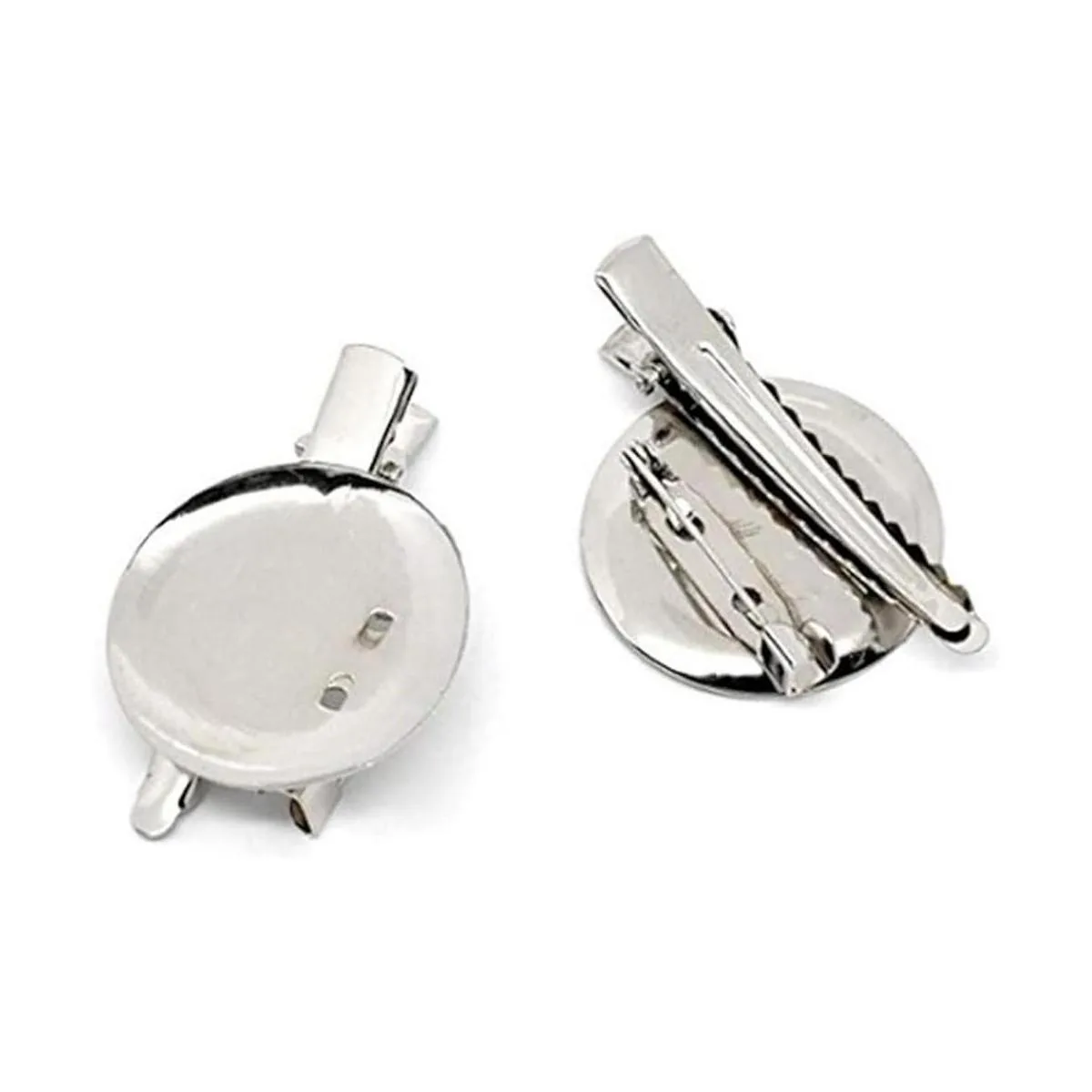20 broches de plata en blanco con bandeja redonda con clip de cocodrilo y pin para hacer corsage, etiquetas de nombre y joyería 1.181 in