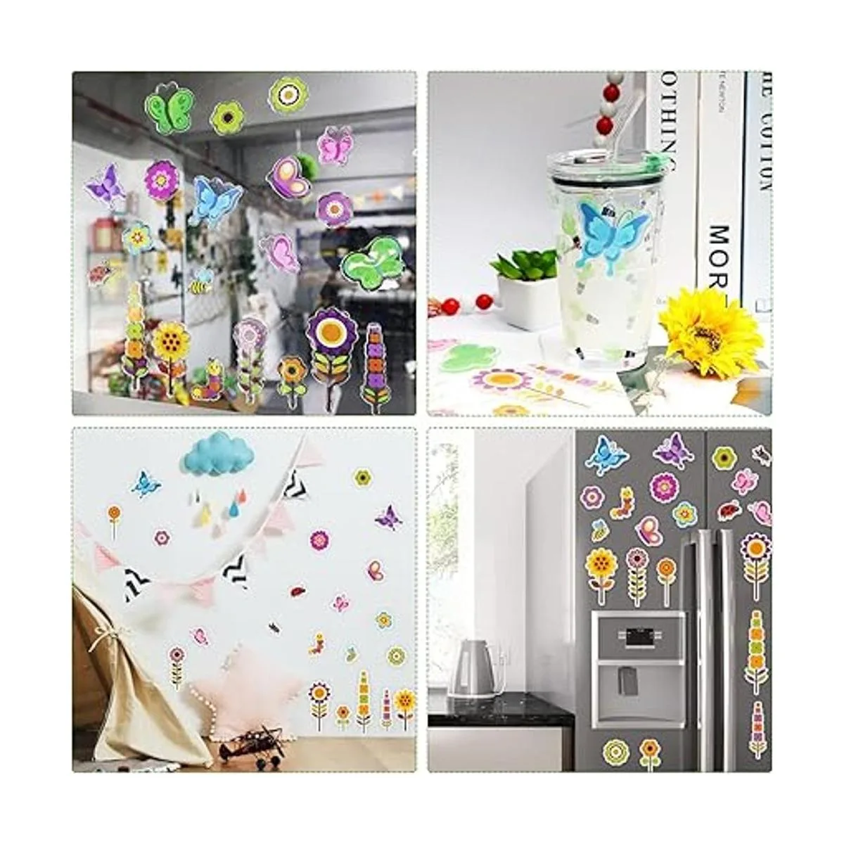 Lo que obtendrás: recibirás 20 adhesivos de gel con 20 patrones diferentes de flores y mariposas que ofrecen un diseño vívido para la decoración de la ventana de tu hogar, la imaginación de tu hijo se puede ampliar con estos bonitos y bonitos adhesivos de ventana de primavera