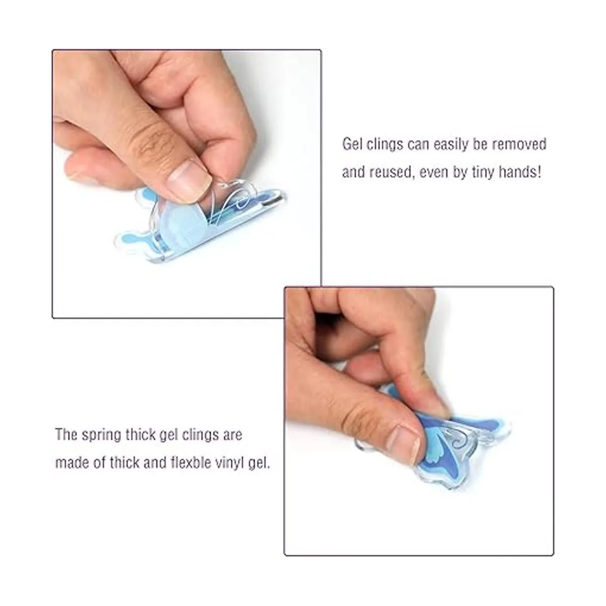 Nota: los adhesivos de gel gruesos de resorte no son comestibles. Estos adhesivos gruesos de gel para ventana son adecuados para niños de 5 años en adelante para jugar, hay un riesgo de asfixia, necesitan ser acompañados por un adulto cuando juega.