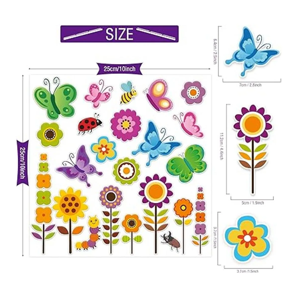 20 calcomanías de gel gruesas de flores de primavera, calcomanías de gel para ventana de mariposa, calcomanías para niños pequeños y adultos, hogar, avión, aula, guardería, suministros de fiesta de primavera, verano, decoraciones extraíbles y reutilizables
