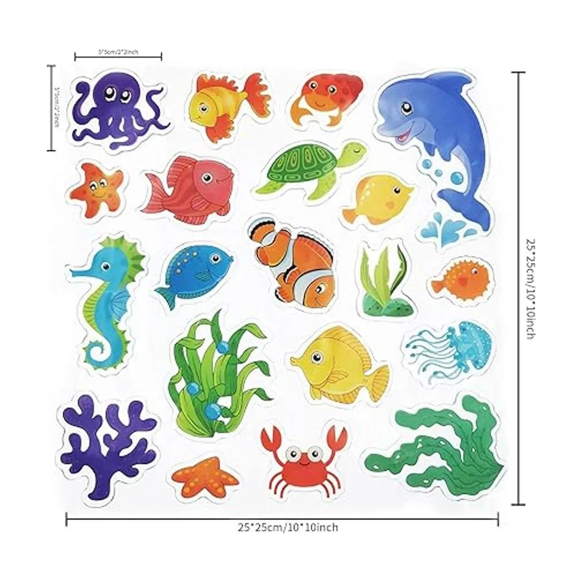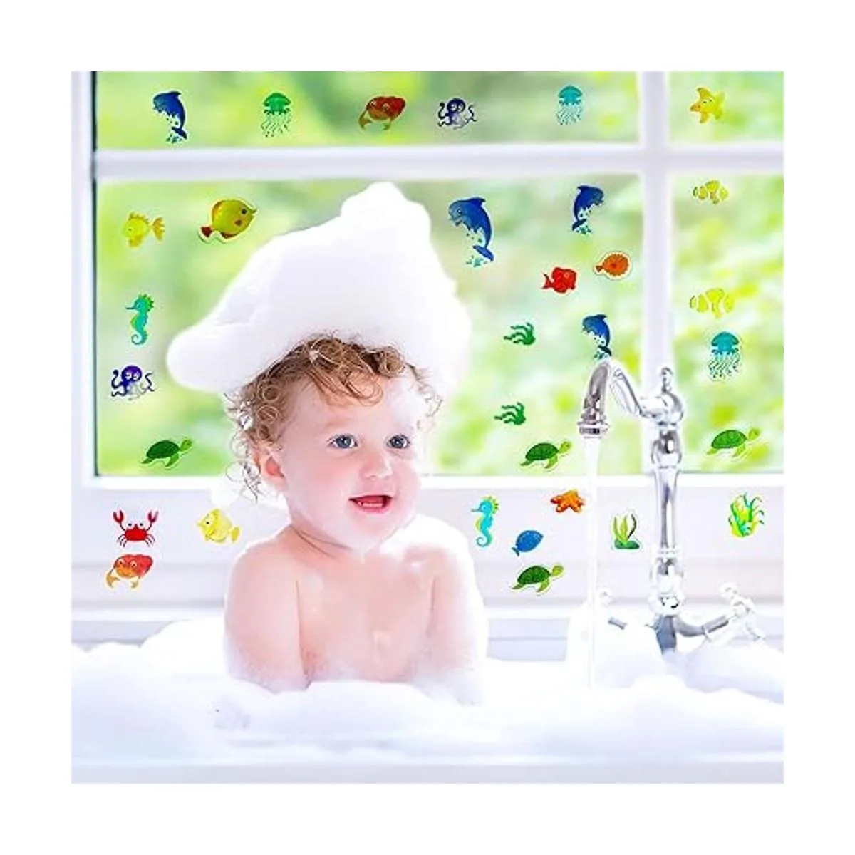 Nota: los adhesivos de gel gruesos de animales marinos no son comestibles. Estos adhesivos gruesos de gel para ventana son adecuados para niños de 5 años en adelante para jugar, hay un riesgo de asfixia, necesitan ser acompañados por un adulto cuando juega.