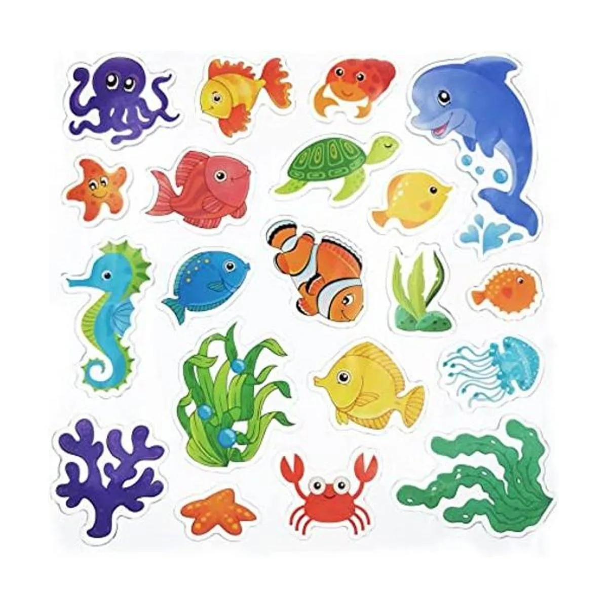 20 calcomanías de gel grueso de animales marinos, calcomanías de gel para ventana del océano, calcomanías para niños pequeños, adultos, hogar, avión, aula, guardería, animales marinos, suministros de fiesta, decoración extraíble y reutilizable