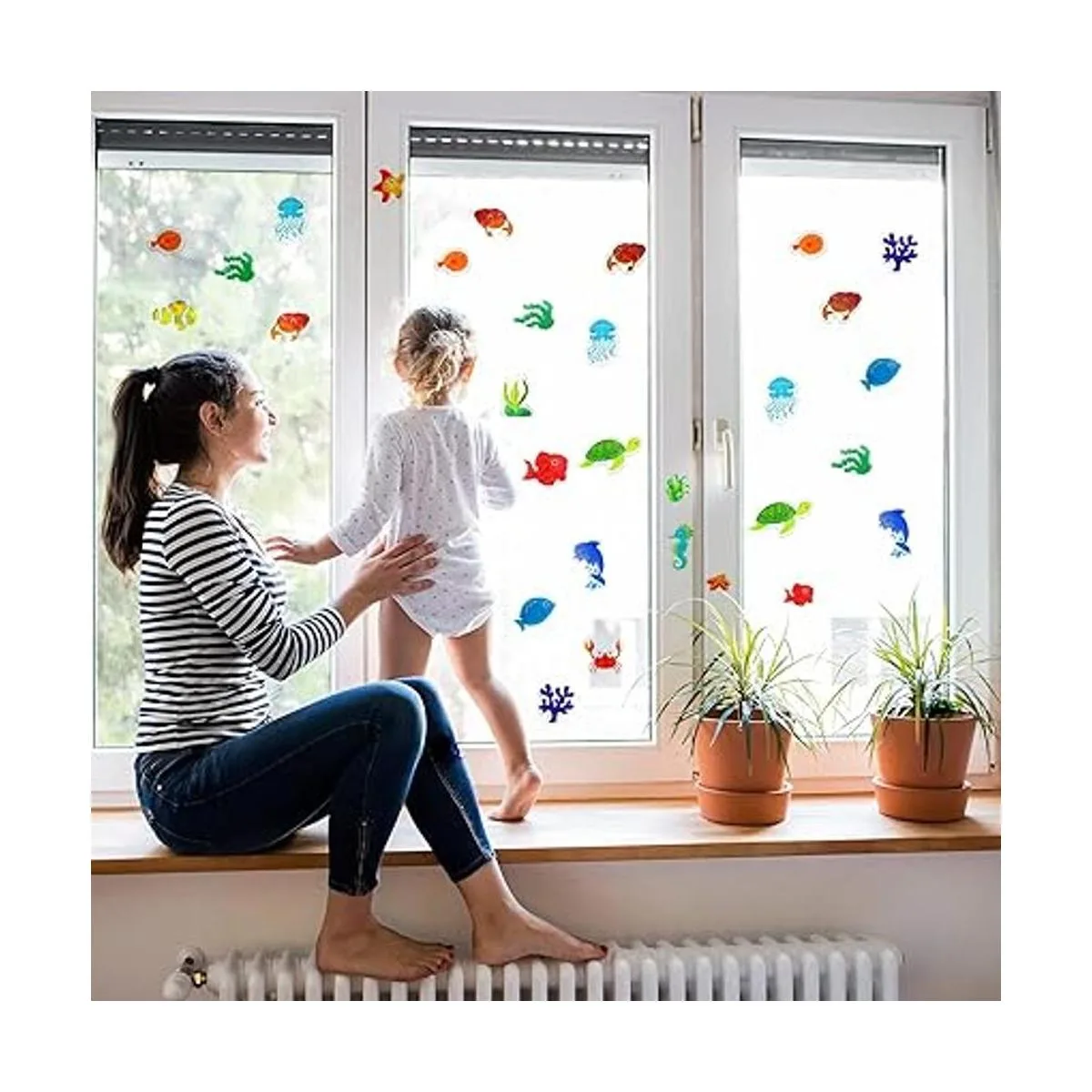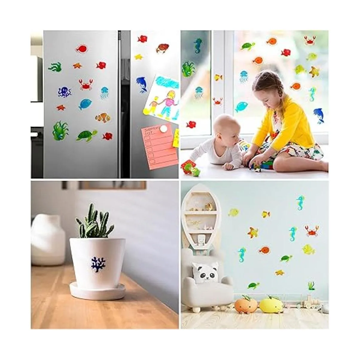 Amplia aplicación: los adhesivos de gel gruesos de animales marinos son ideales para ventanas de coche, nevera, paredes, aulas, guardería, dormitorios, salas de juegos y mucho más Estos adhesivos de gel también pueden decorar tu fiesta de cumpleaños, fiesta familiar, aniversario o fiesta temática del océano, etc.
