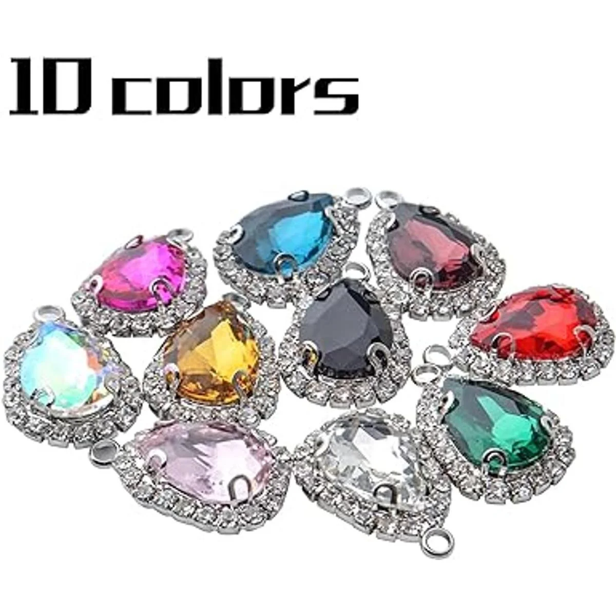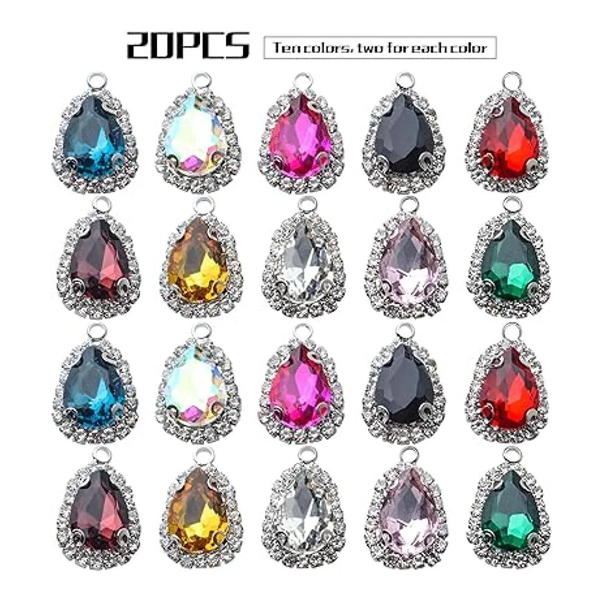 20 colgantes de abalorios de cristal con forma de gota de agua, colgantes de lágrima de diamantes de imitación, colgantes para manualidades, pulseras, collares, joyas, 0.551 x 0.827 in, 10 colores