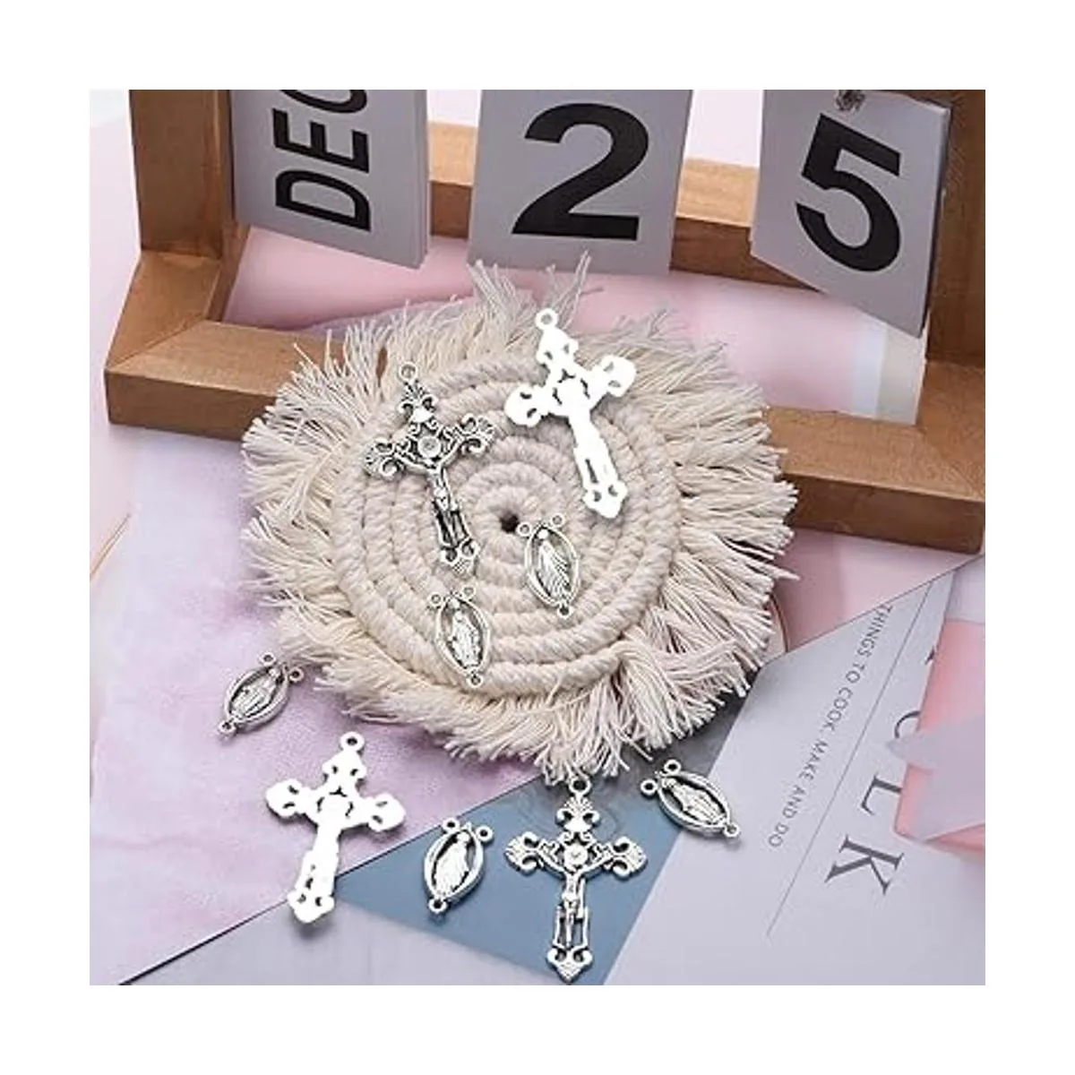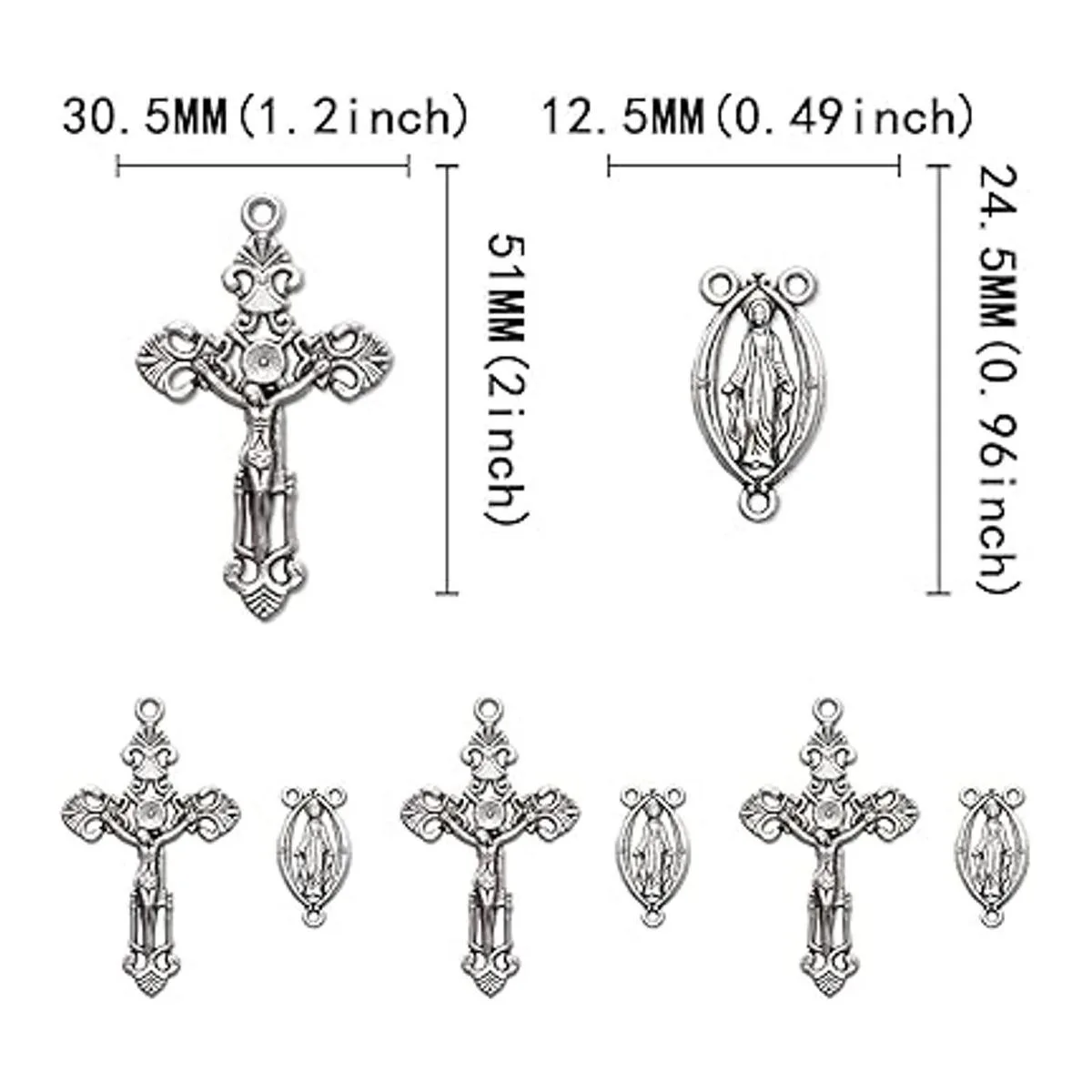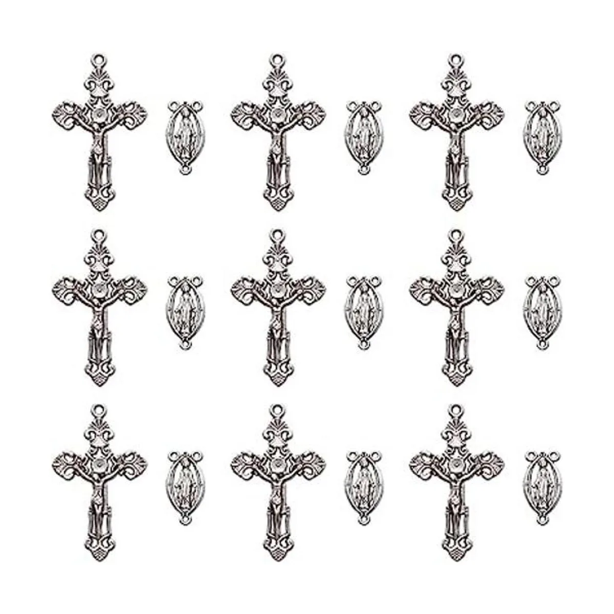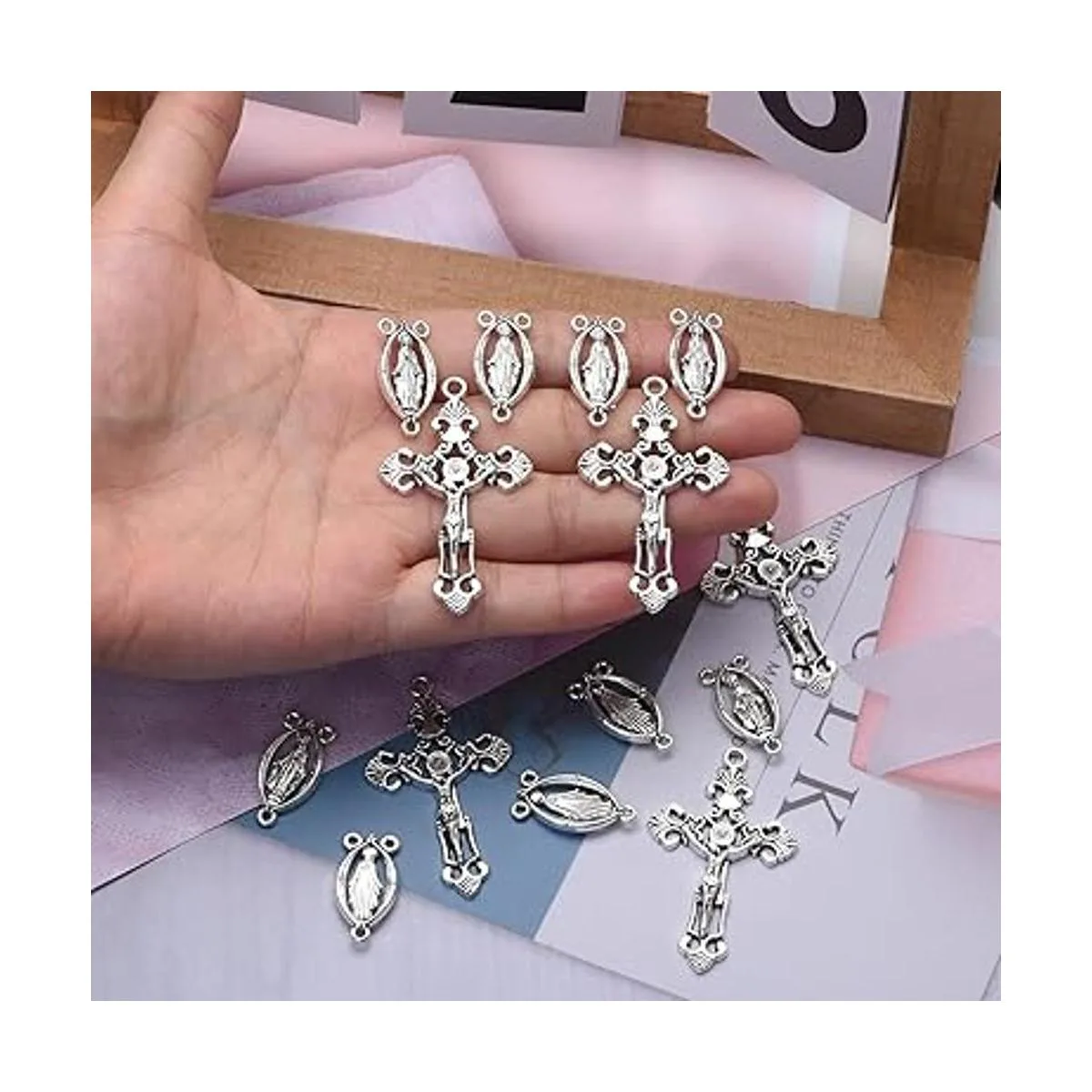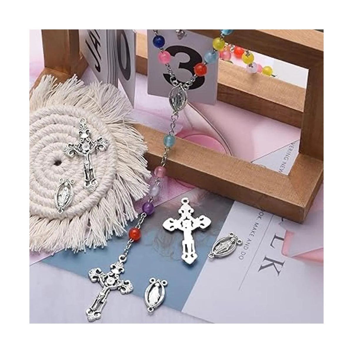 20 colgantes de cruz y centro de aleación de plata envejecida mezclados con medalla milagrosa de Jesús, crucifijo de Jesús, eslabones de araña ovalados para rosario católico para hacer joyas, collares, pulseras, llaveros, aretes, suministros de manualidades