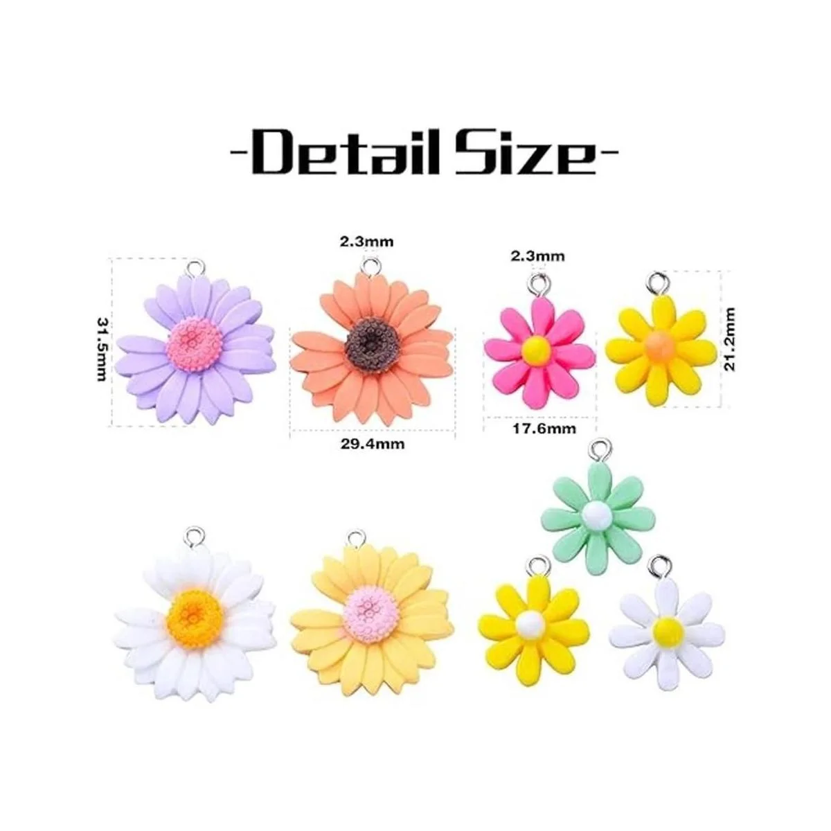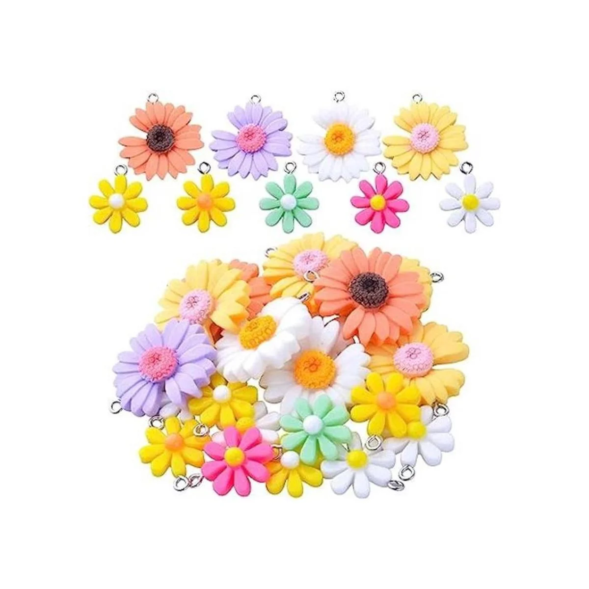 20 colgantes de flores de colores con colgante de resina, margarita y flor, para manualidades, 2 estilos