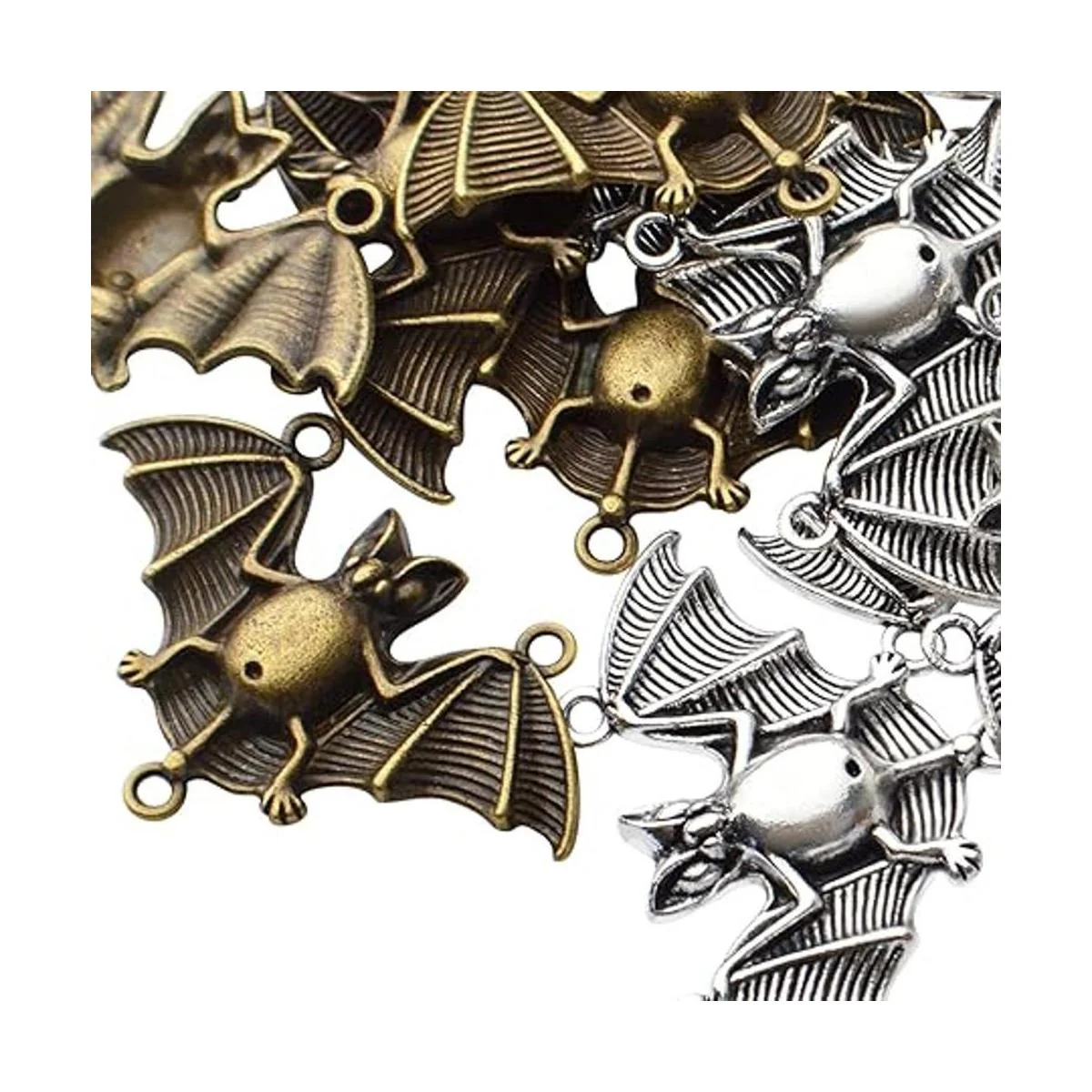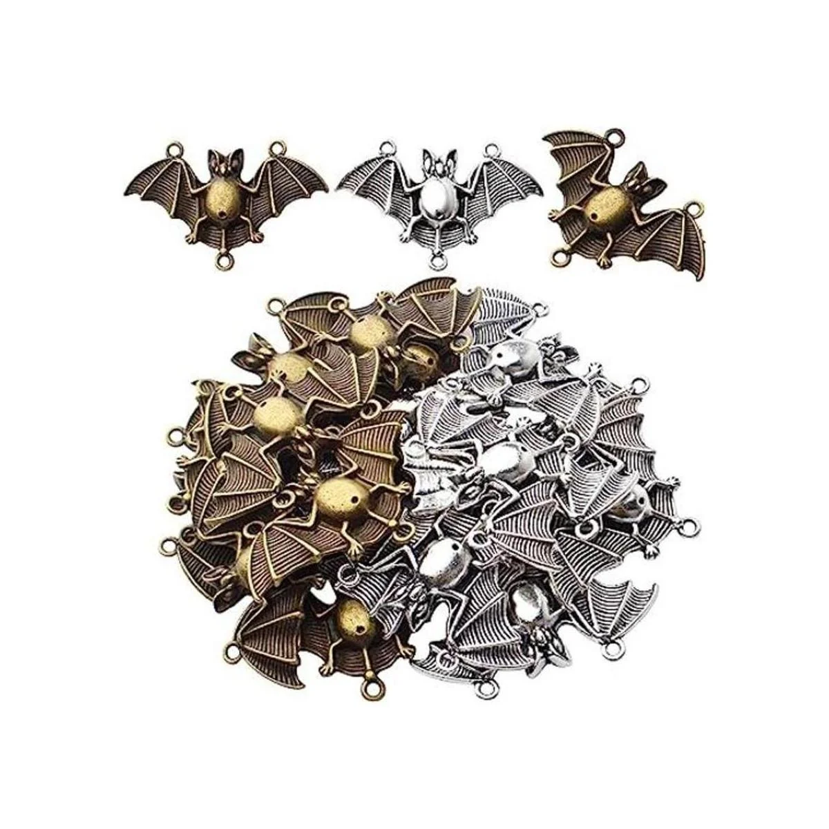 Colgantes de murciélago: estos abalorios están diseñados en forma de murciélago, los exquisitos detalles en los abalorios añaden un interés visual diferente y una expresión vintage a tus joyas. El diseño sofisticado e ideal añade acentos llamativos que puedes llevar a todas partes.