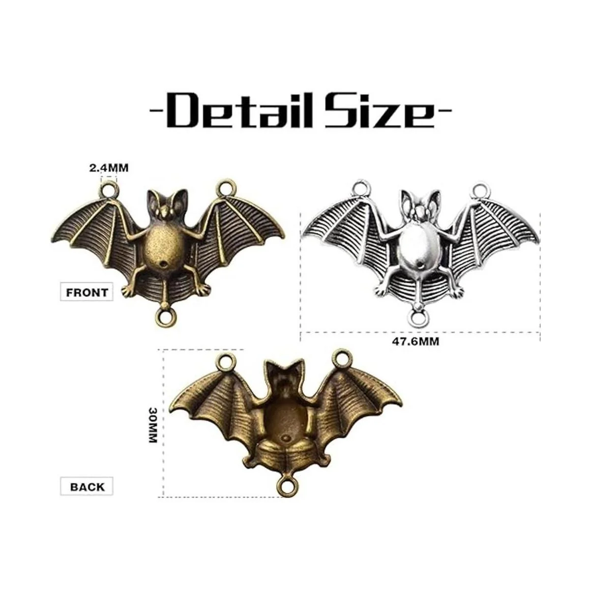 Fácil de usar: cada uno de los colgantes de murciélago tiene tres agujeros, lo que te permite pasar fácilmente la cuerda o la cadena. Estos abalorios de conector pueden servir como una decoración de eslabones para hacer que tu pulsera y collar sean más hermosos y especiales.