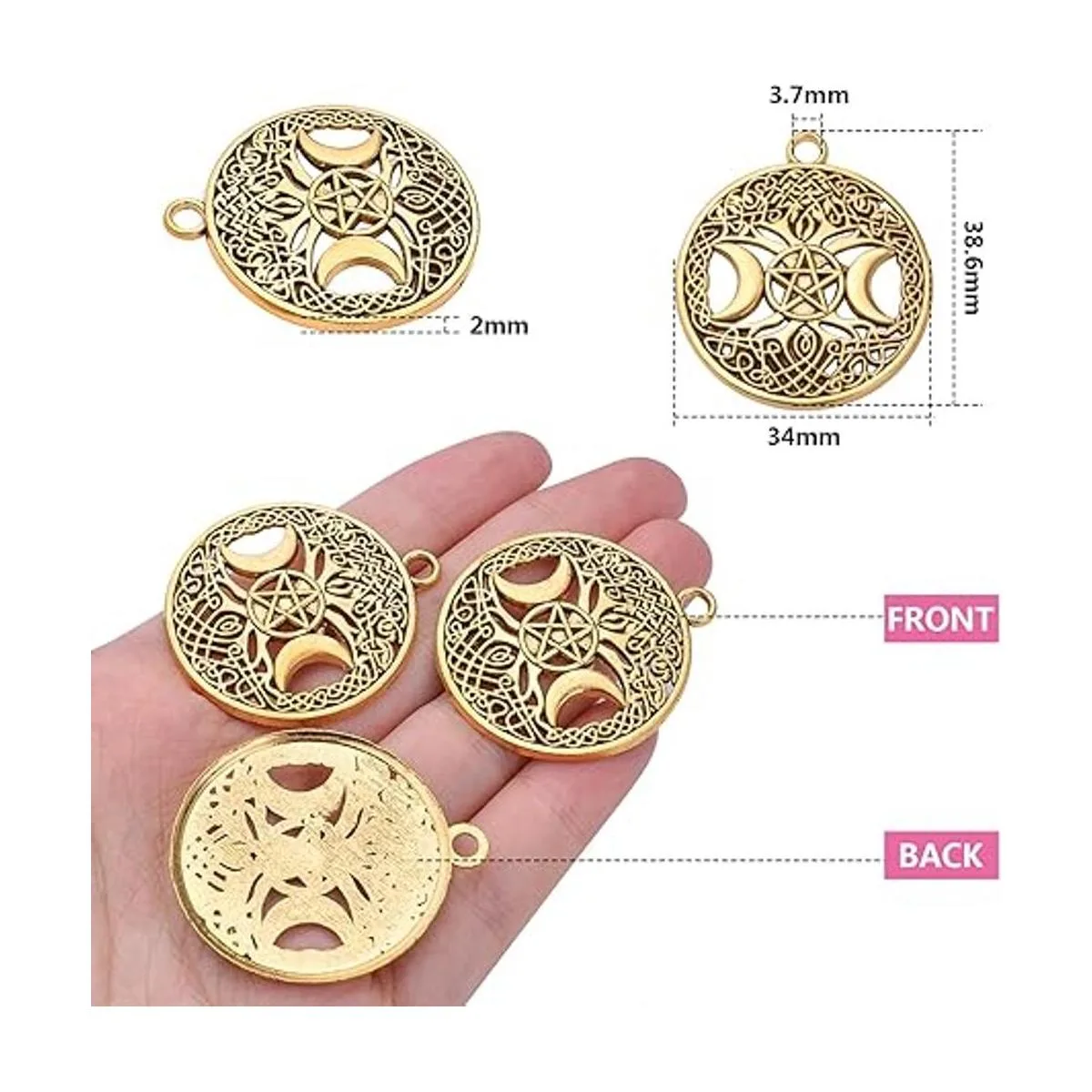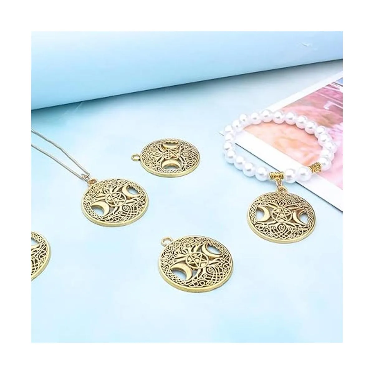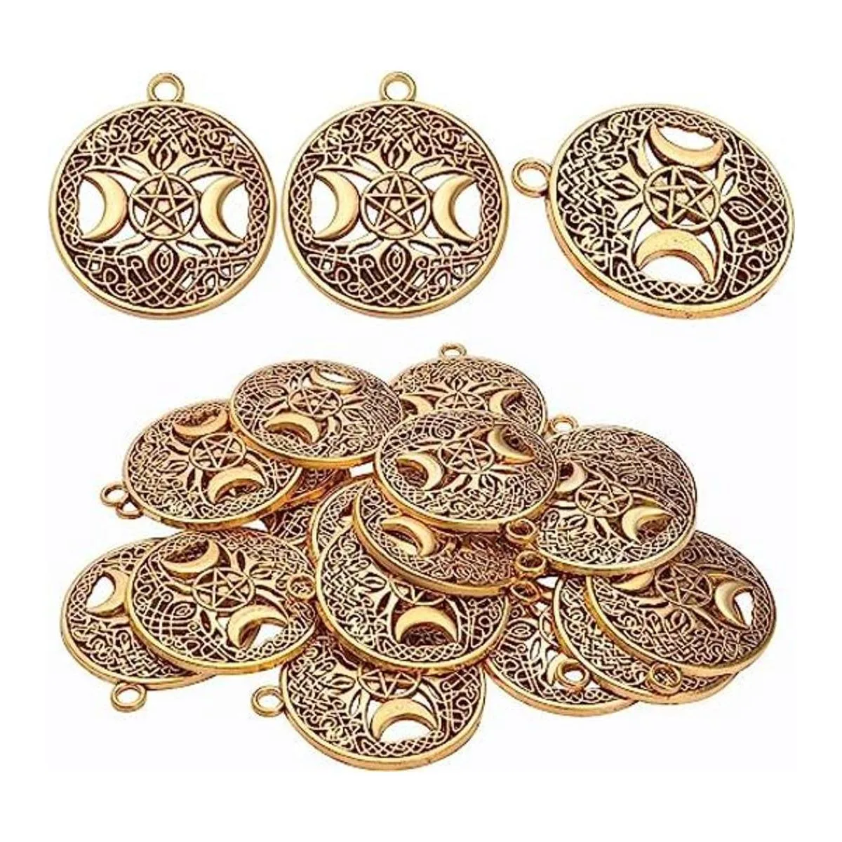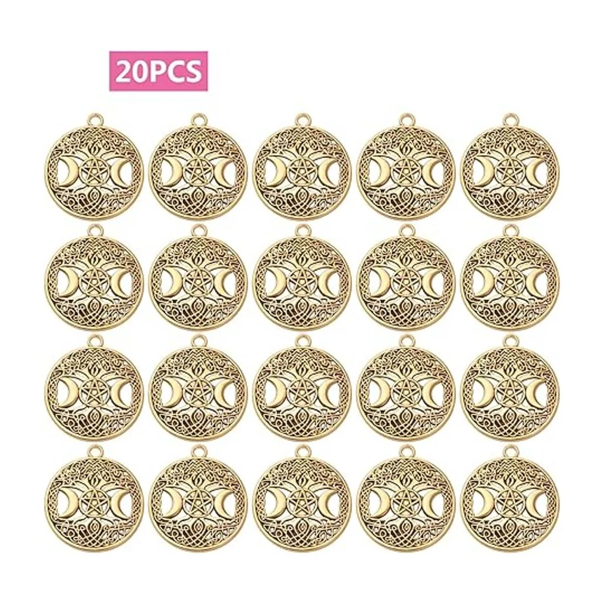 20 dijes de árbol de la vida con triple luna, diosa, pentáculo, aleación tibetana, colgante vintage, accesorios para hacer joyas, collares, pulseras, manualidades, Metal