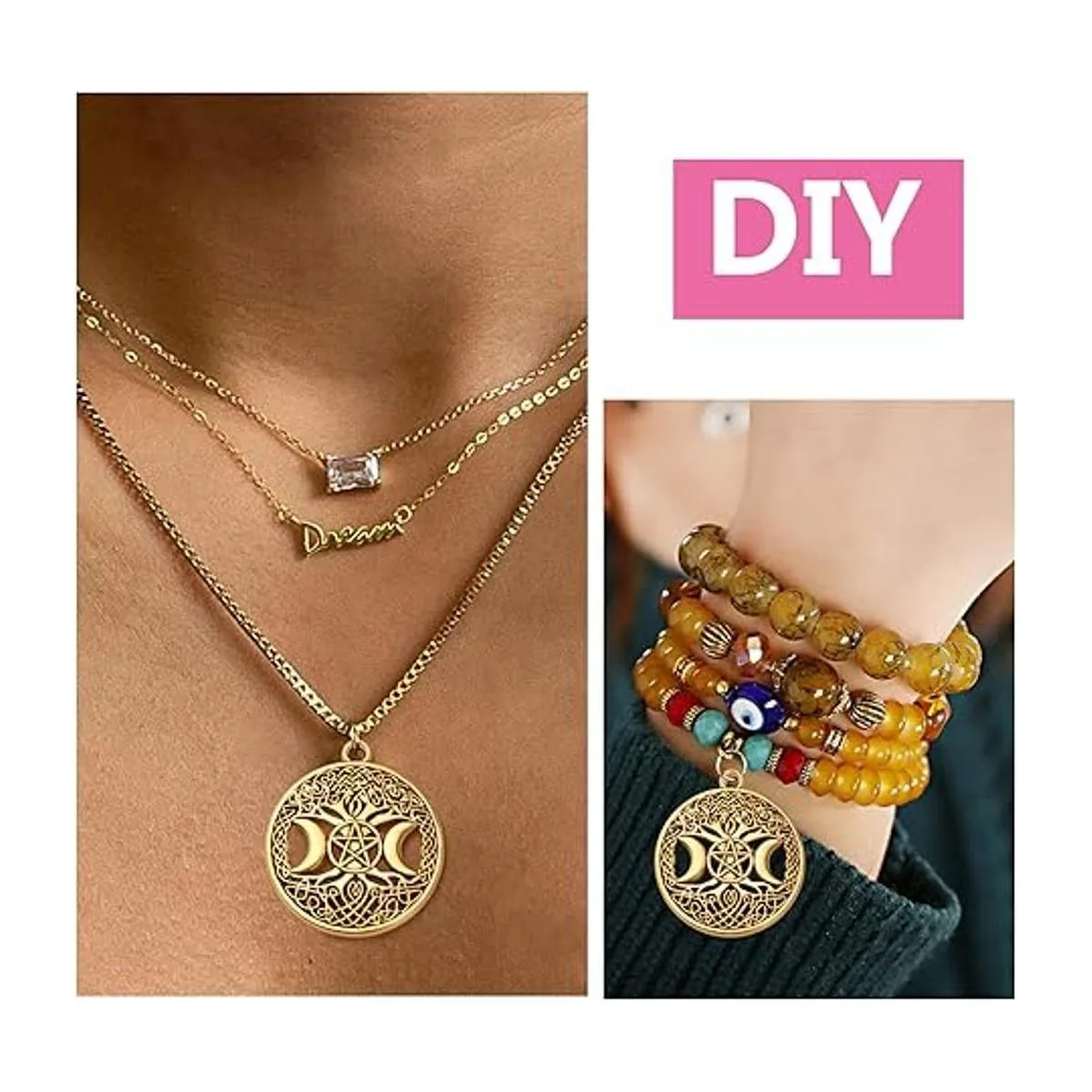 Diseño único: el árbol de la vida simboliza la vida y la salud, y los dijes están diseñados en forma de árbol de la vida, y cada uno de los dijes cuenta con pentagrama y lunas, lo que hará que tus manualidades de joyería se vean más atractivas
