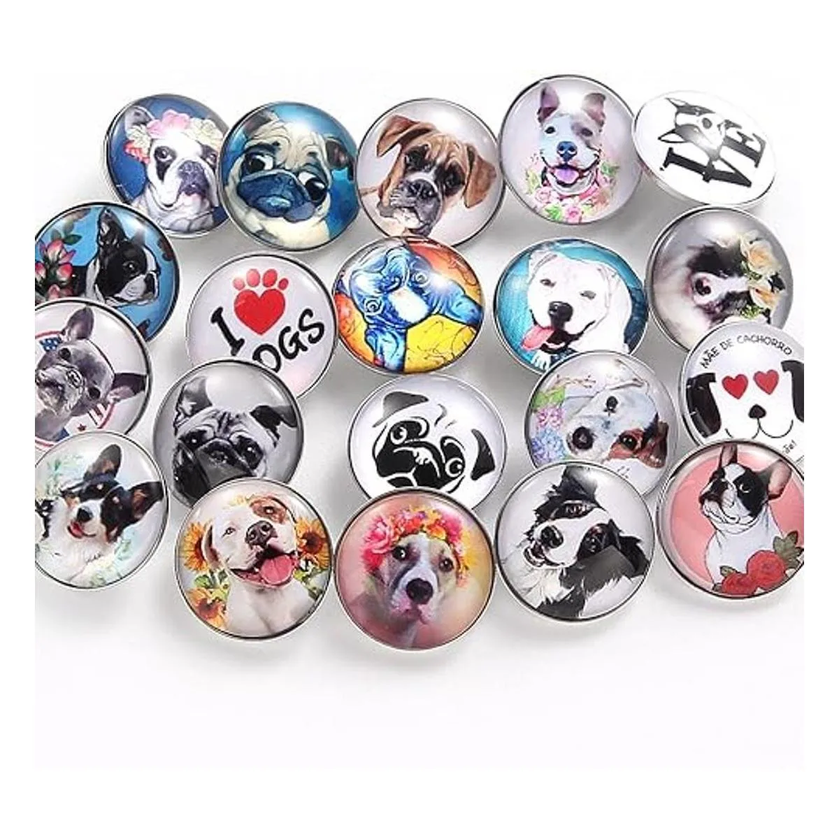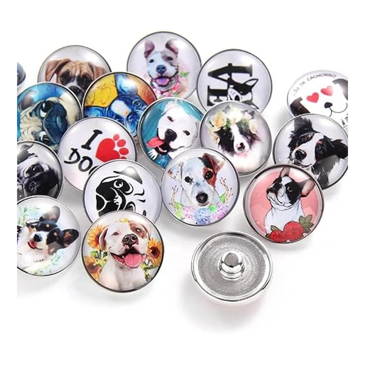 20 dijes de joyería para perros de 0.709 in intercambiables a presión, dijes a presión para joyas, collares, pulseras, botones de cristal a presión
