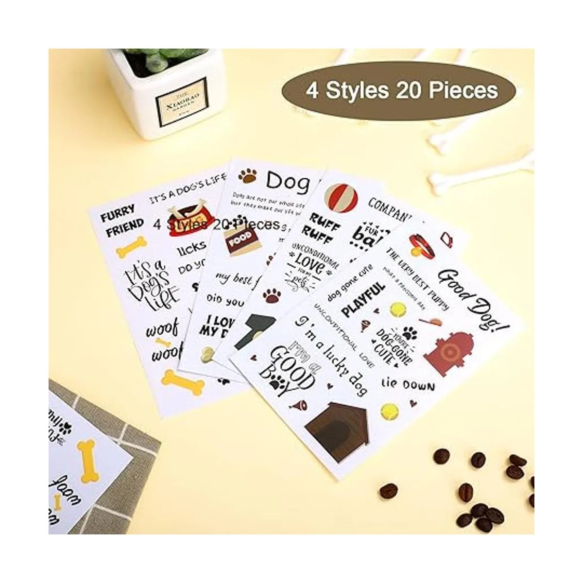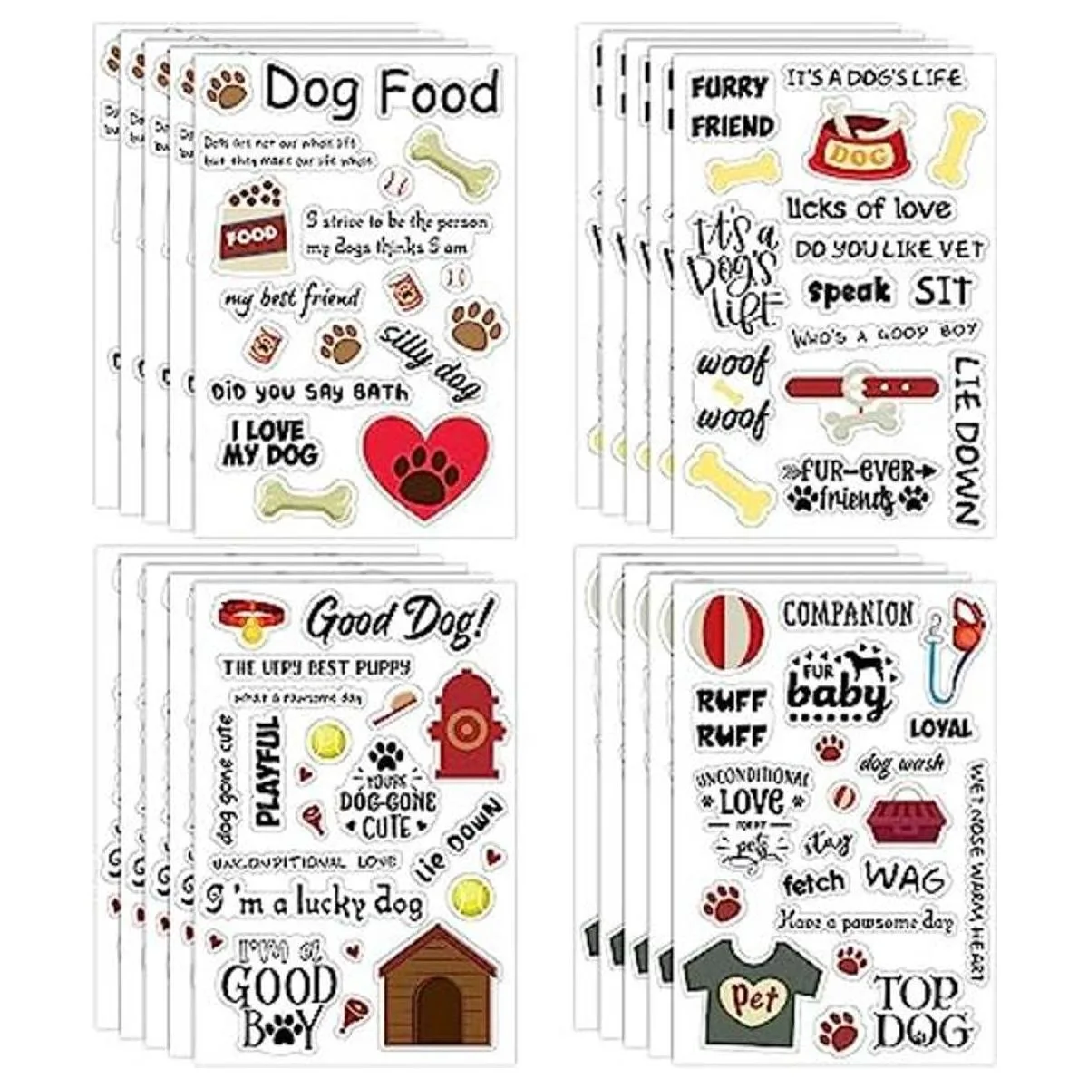 20 hojas de calcomanías de perro para álbumes de recortes, frases de perro, calcomanías transparentes con estampado de patas de perro, hojas con refranes, calcomanías de palabras de cachorro para álbumes de recortes, manualidades, álbum de decoración de laptop, 4 x 6 pulgadas