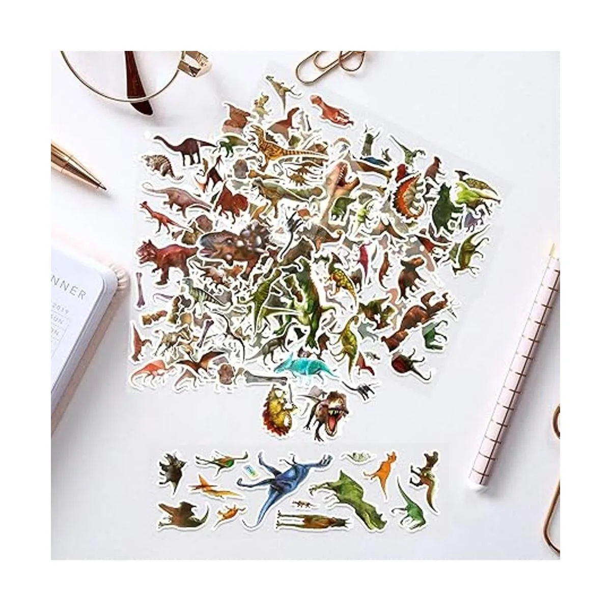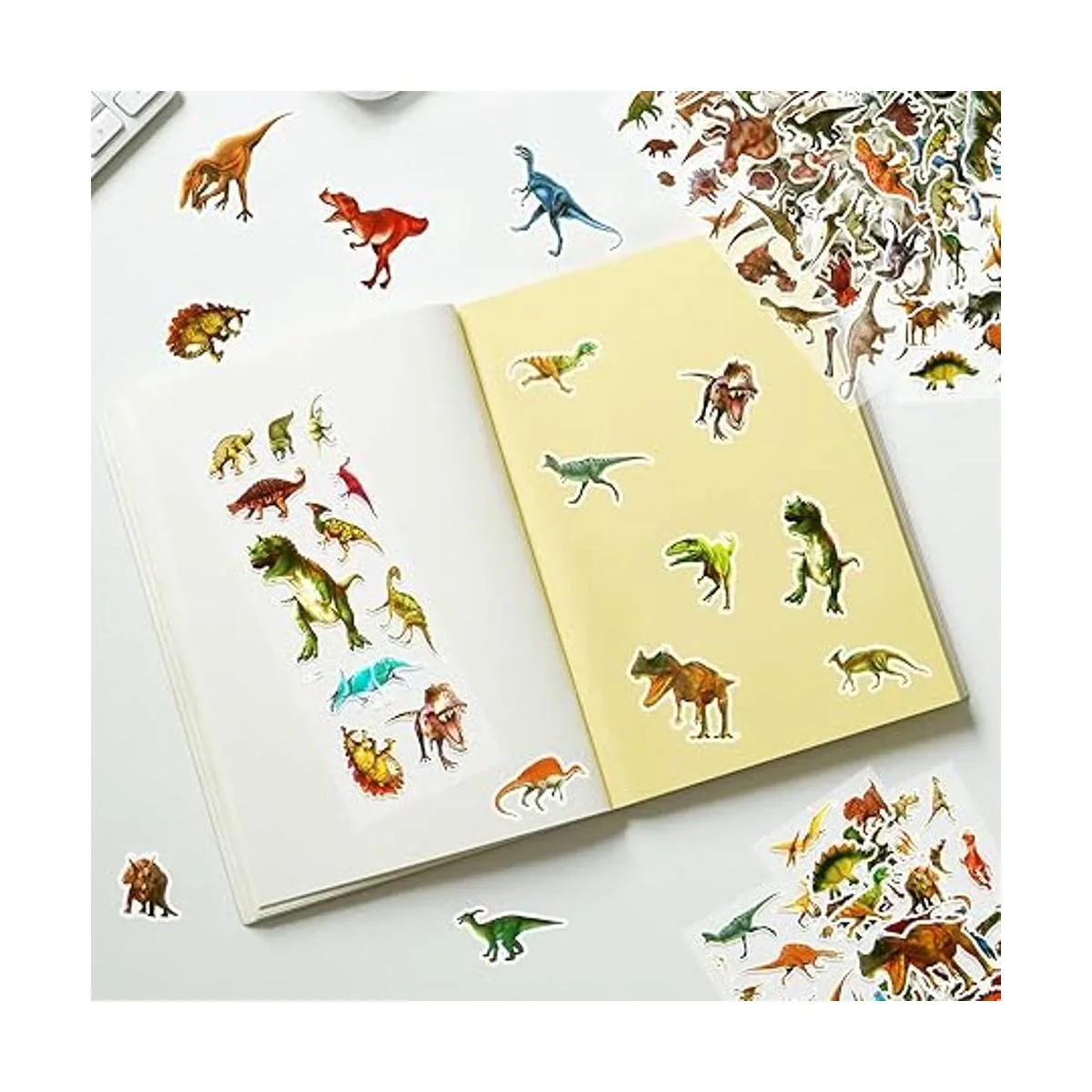 Calcomanías de dinosaurio a granel El paquete incluye 20 hojas diferentes de calcomanías de dinosaurio reales, un total de 350 calcomanías de dinosaurios variados sin repetir en cada paquete.